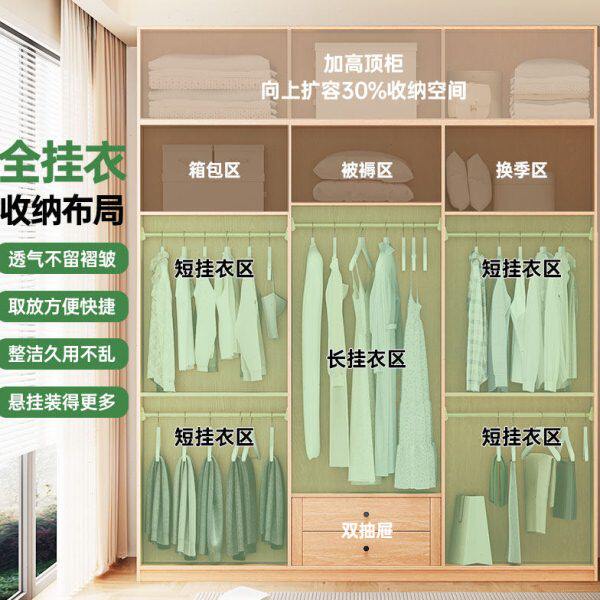 全实木定制衣柜橡木卧室家用原木风加高2.5-3米加长2.5-3.2米衣橱