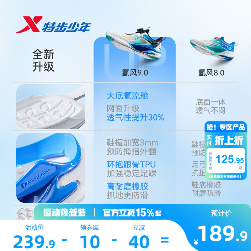 【氢风9.0跑鞋】特步儿童官方网面透气跑步鞋男童运动鞋女童鞋子
