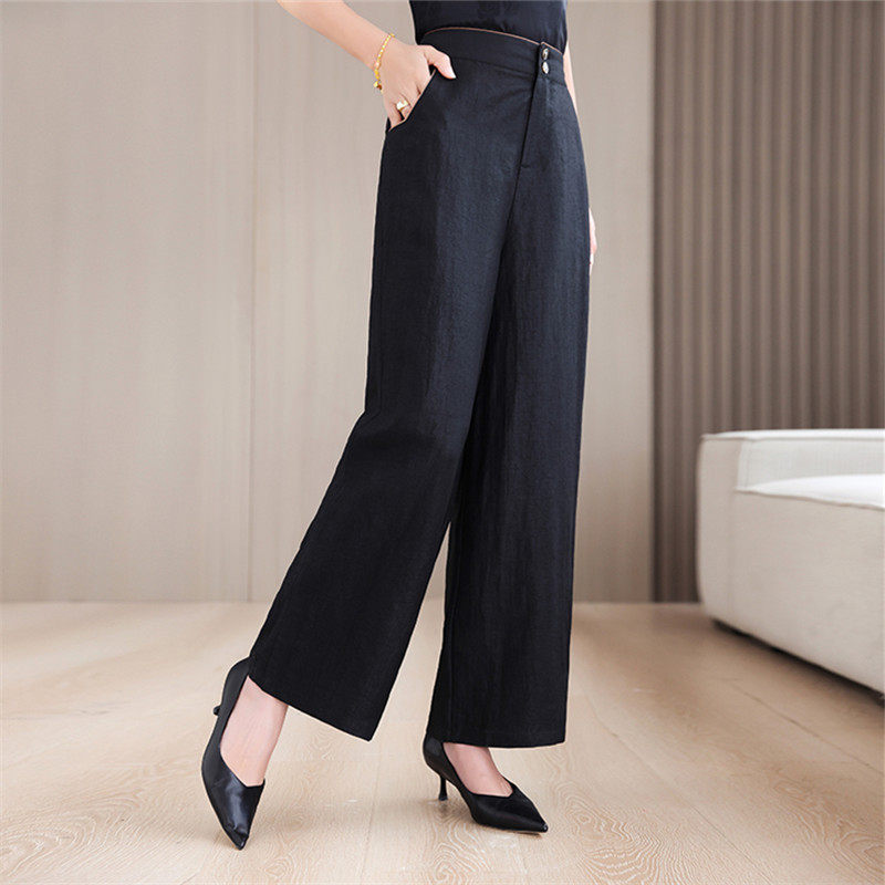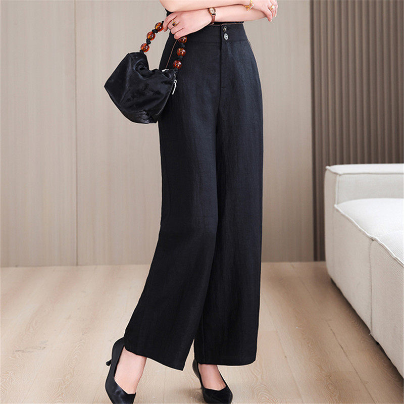 龟纹香云纱阔腿裤夏直筒长裤高端品牌女装清仓正品真丝桑蚕丝裤子