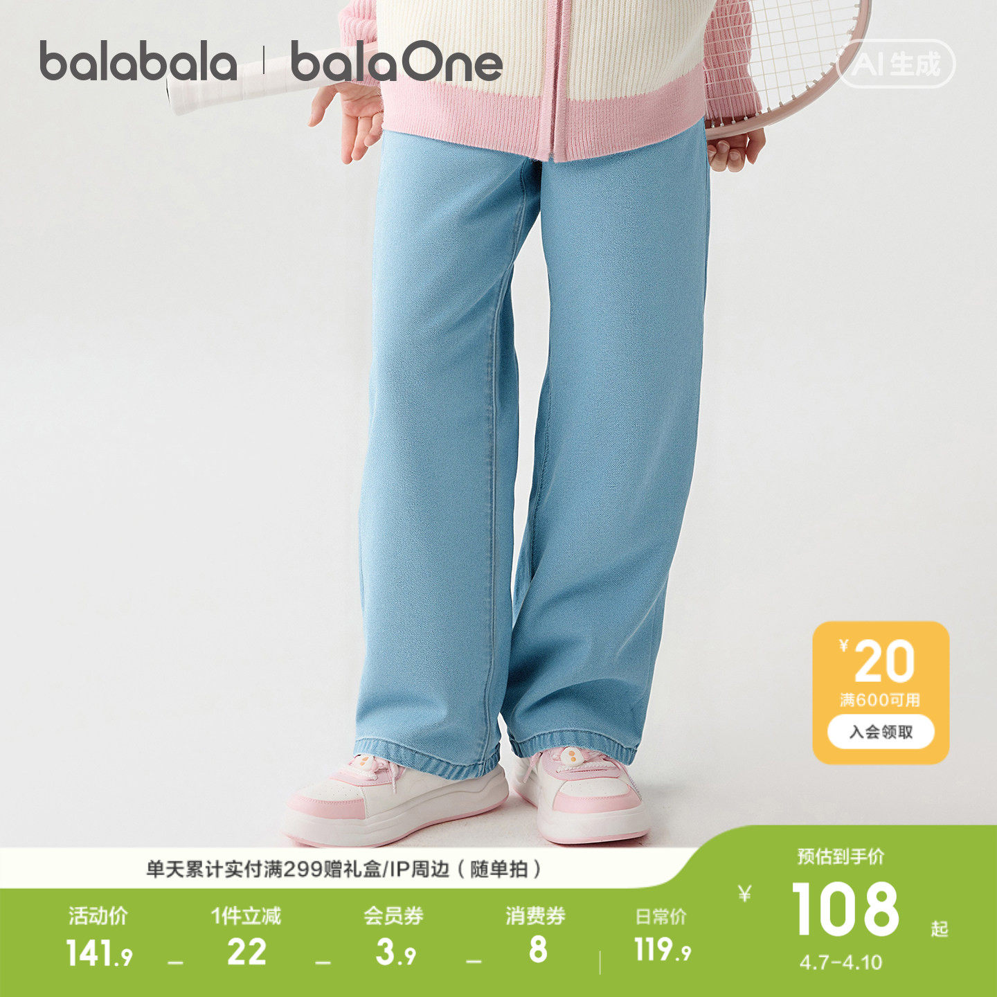 巴拉巴拉童装女童长裤宽松直筒牛仔裤2026春装新款大童裤子休闲潮