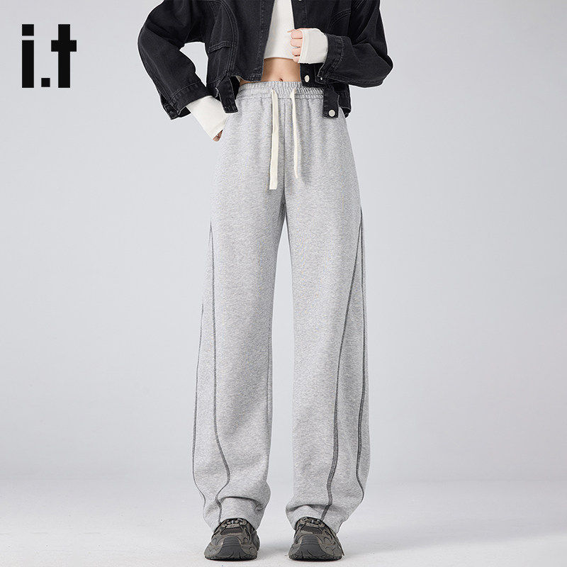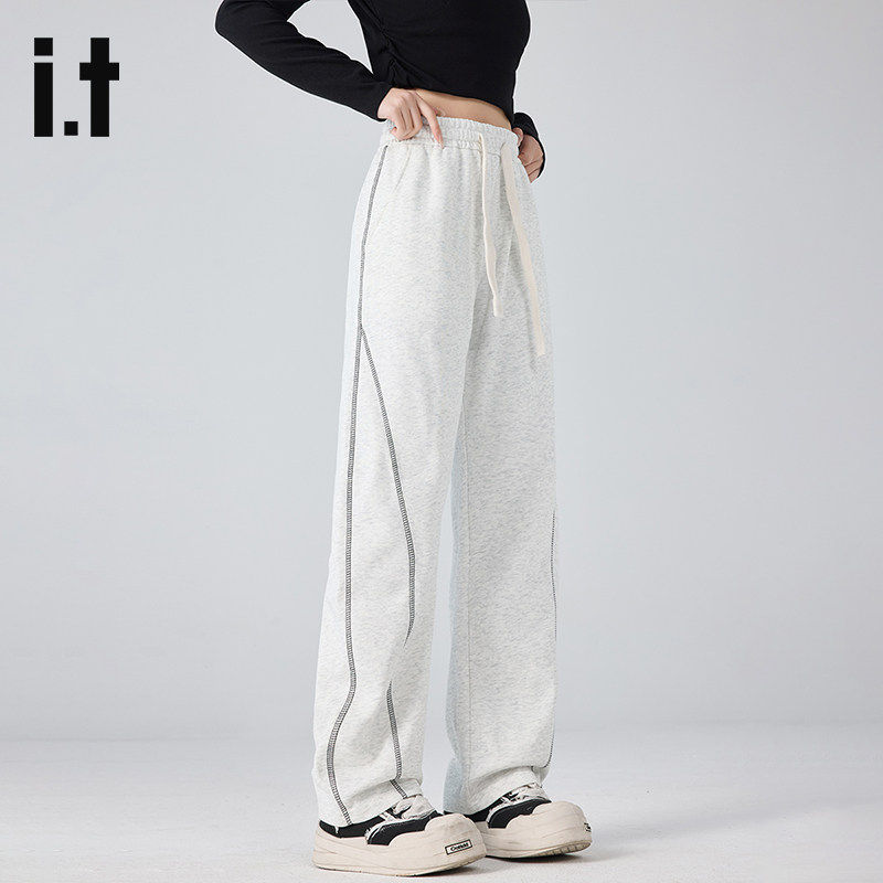 it:izzue官方休闲裤女款春夏季宽松直筒显瘦抽绳阔腿裤子女士6M