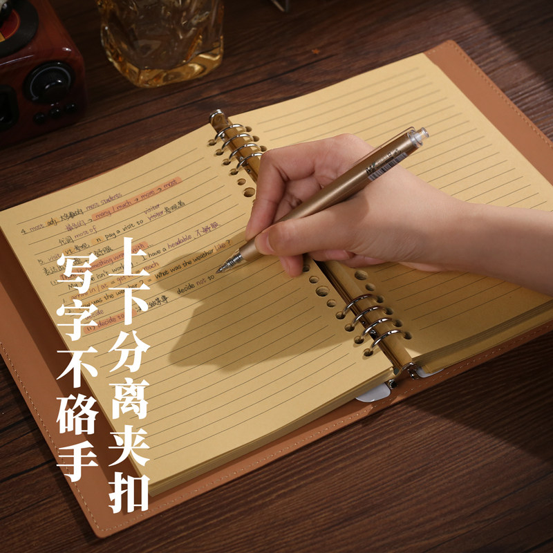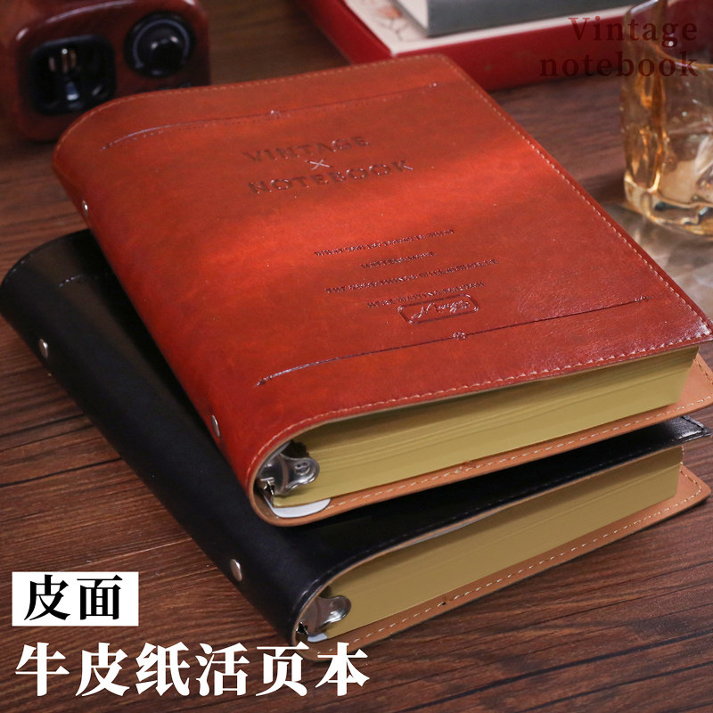 a5复古牛皮纸活页本可拆卸软皮笔记本本子学生日记本商务办公记事本加厚牛皮色内页手账本高颜值不硌手横线本