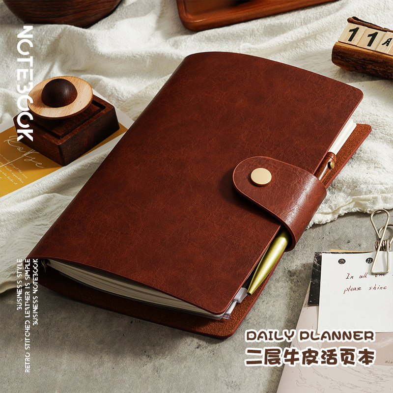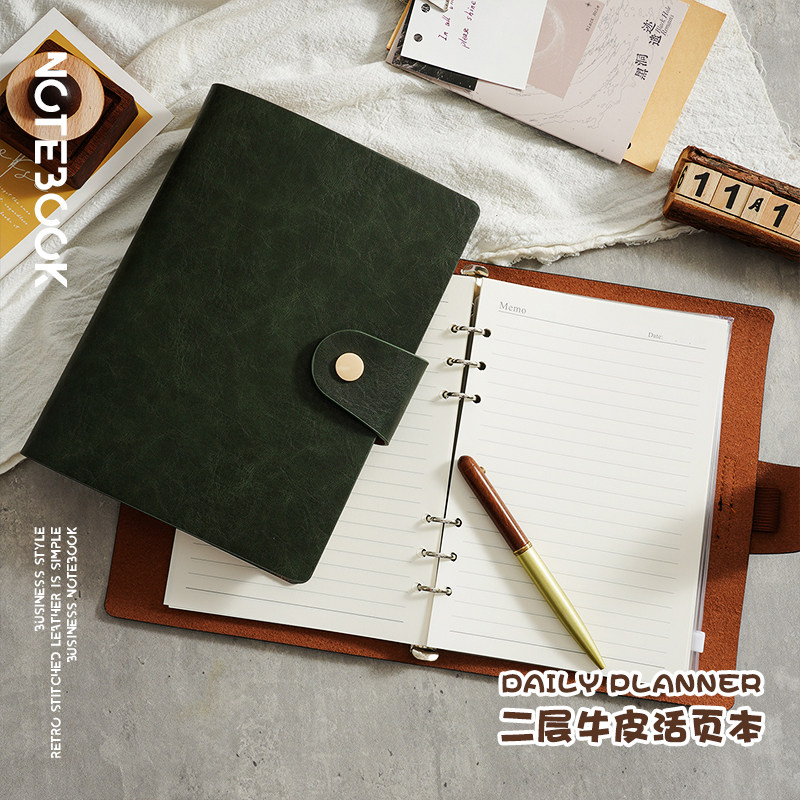 二层牛皮A5活页笔记本本子记事本日记本手帐本可拆卸精致高颜值软皮面礼盒企业公司年会高档礼品定制可印logo