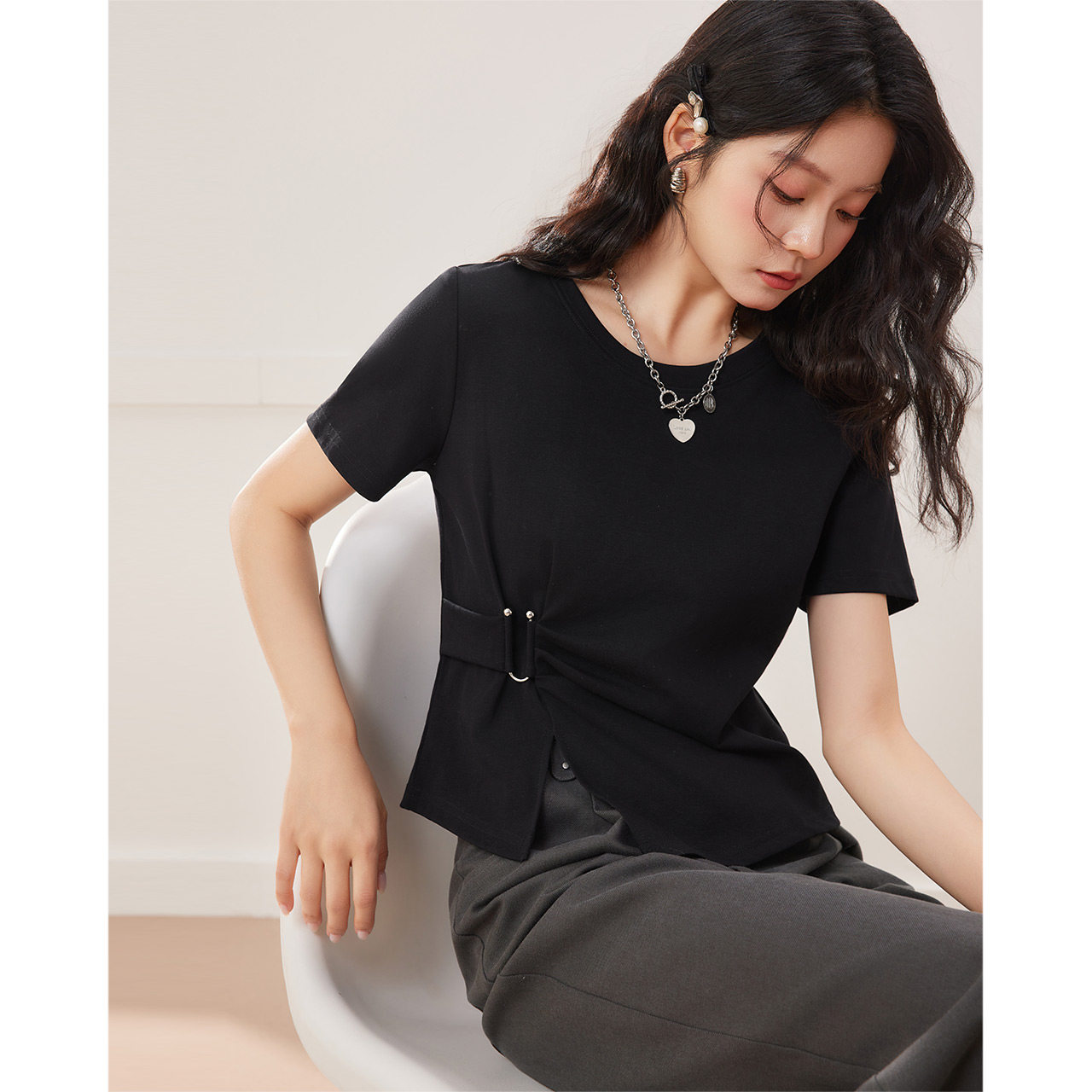 IEF/爱依服【微胖】大码女装T恤2026夏新款韩版简约通勤百搭上衣
