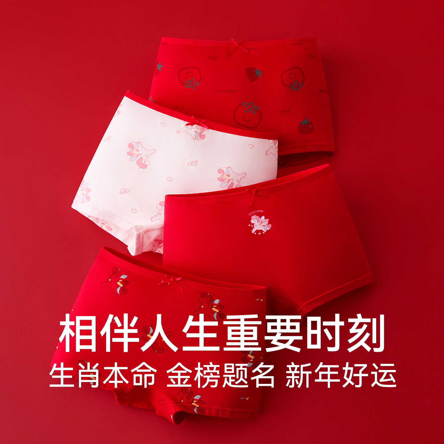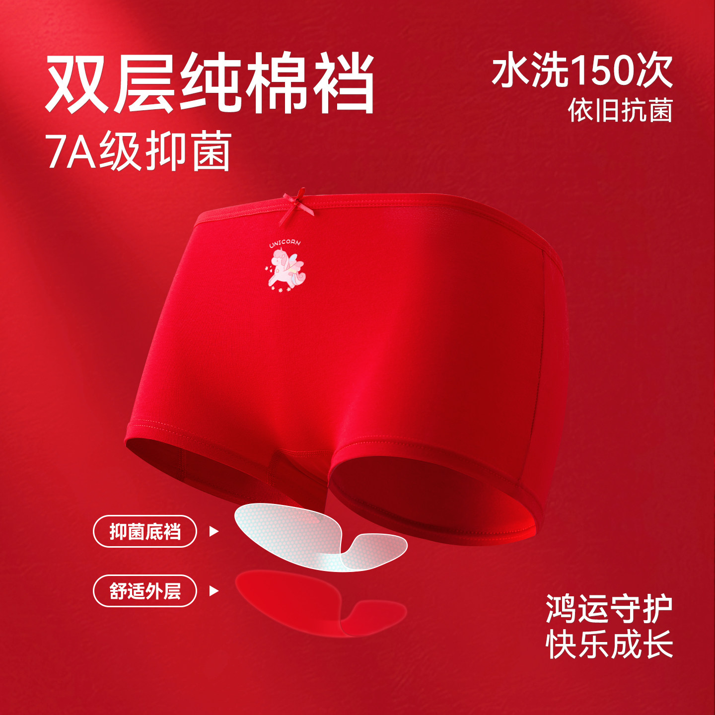 红豆女童内裤本命年红色儿童马年女孩纯棉三角裤平角新年短裤抗菌