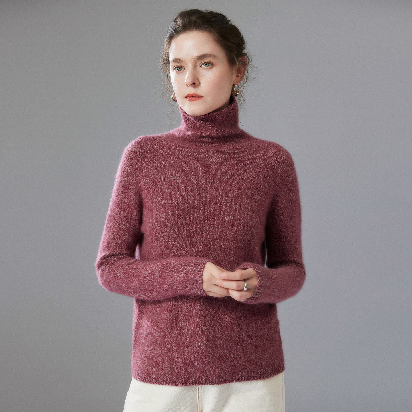 邓肯花式纱山羊绒衫女堆堆领加厚宽松针织打底衫秋冬新款毛衣上衣
