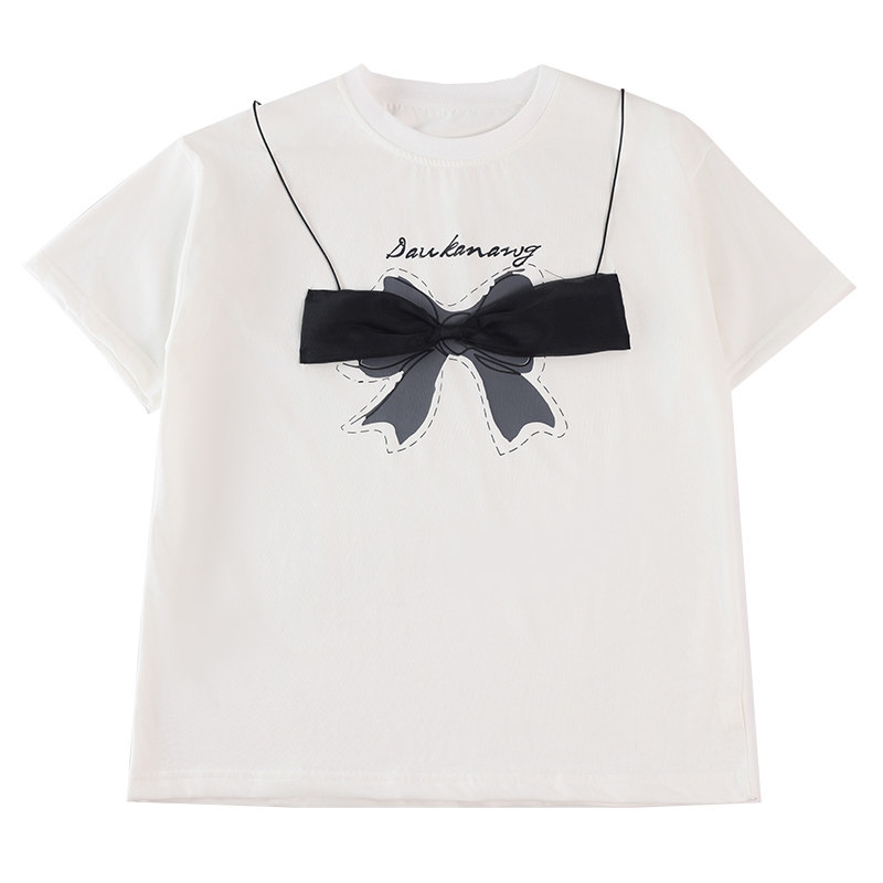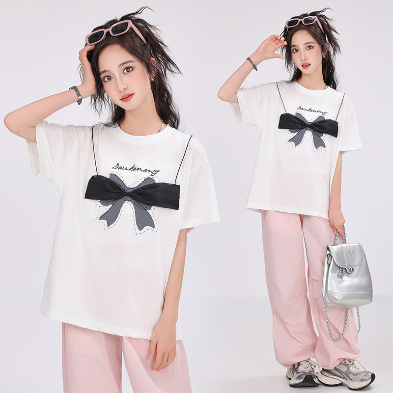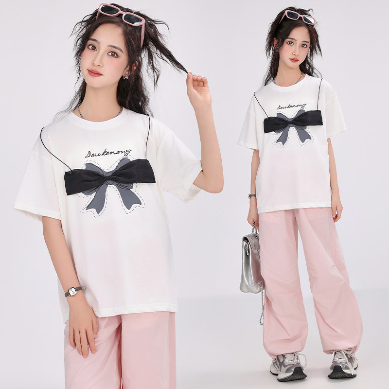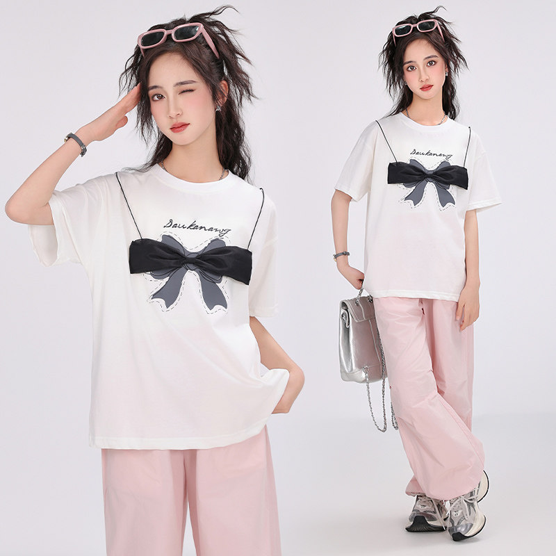 胖女童短袖t恤夏装中大童加肥加大码宽松青少年初中生洋气白色棉T