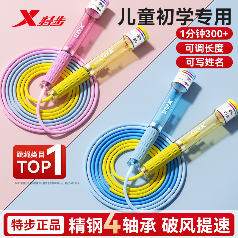 特步跳绳儿童小学生专用竞速双轴承沙不打结式初中考体育幼儿园子