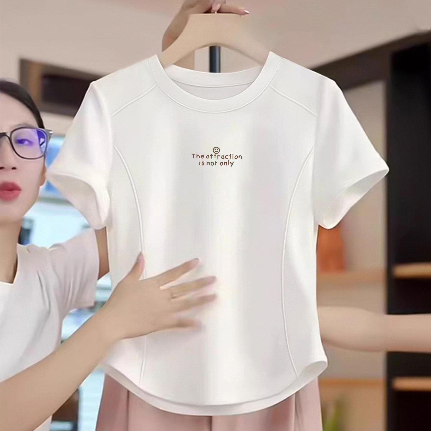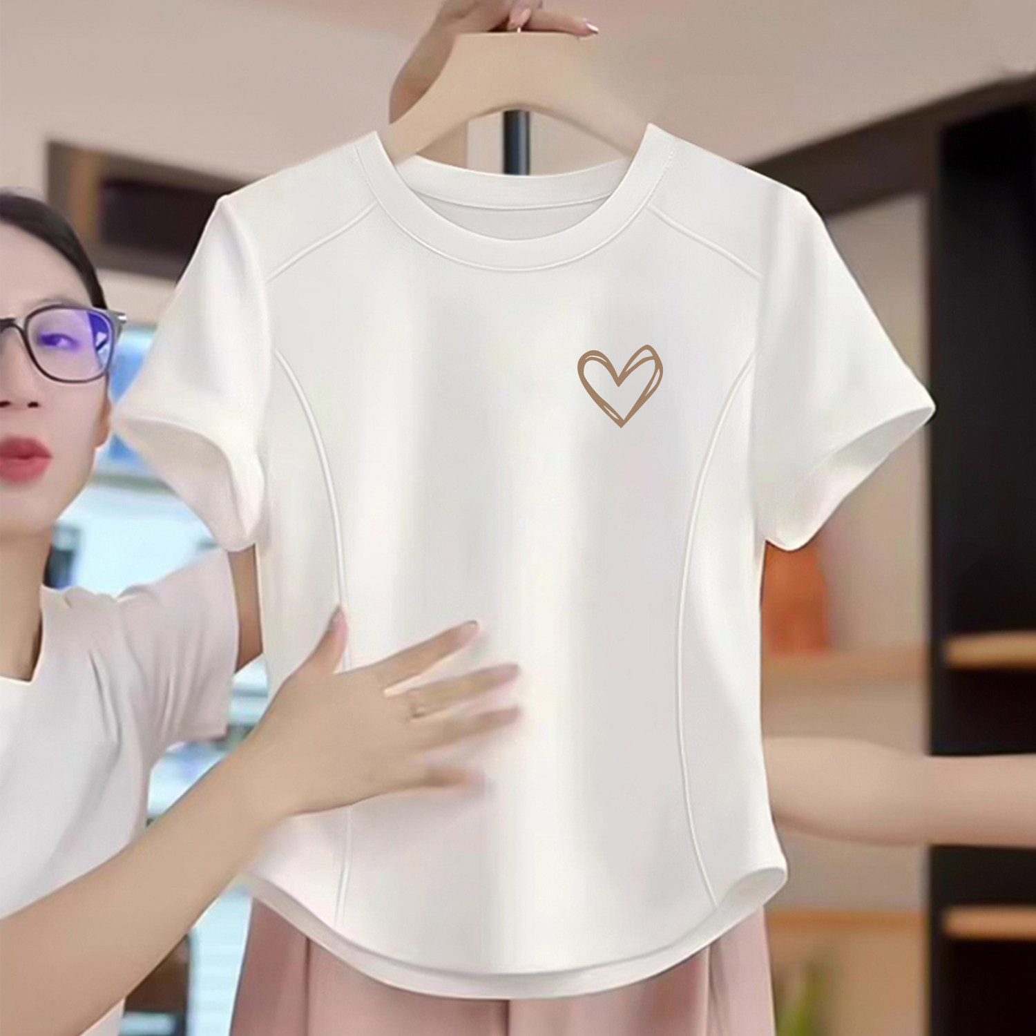 女童圆领纯棉短袖t恤夏装2026新款儿童小女孩短款鱼骨设计感上衣