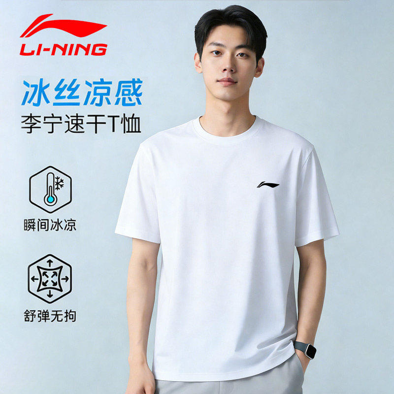 李宁短袖男夏季2026新款速干t恤青少年男生薄款圆领半袖运动上衣