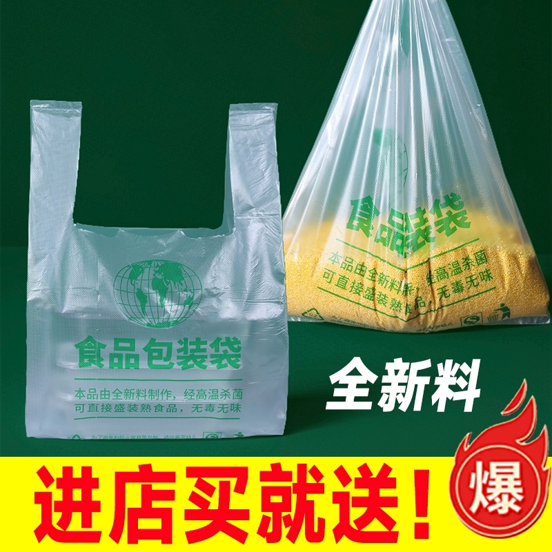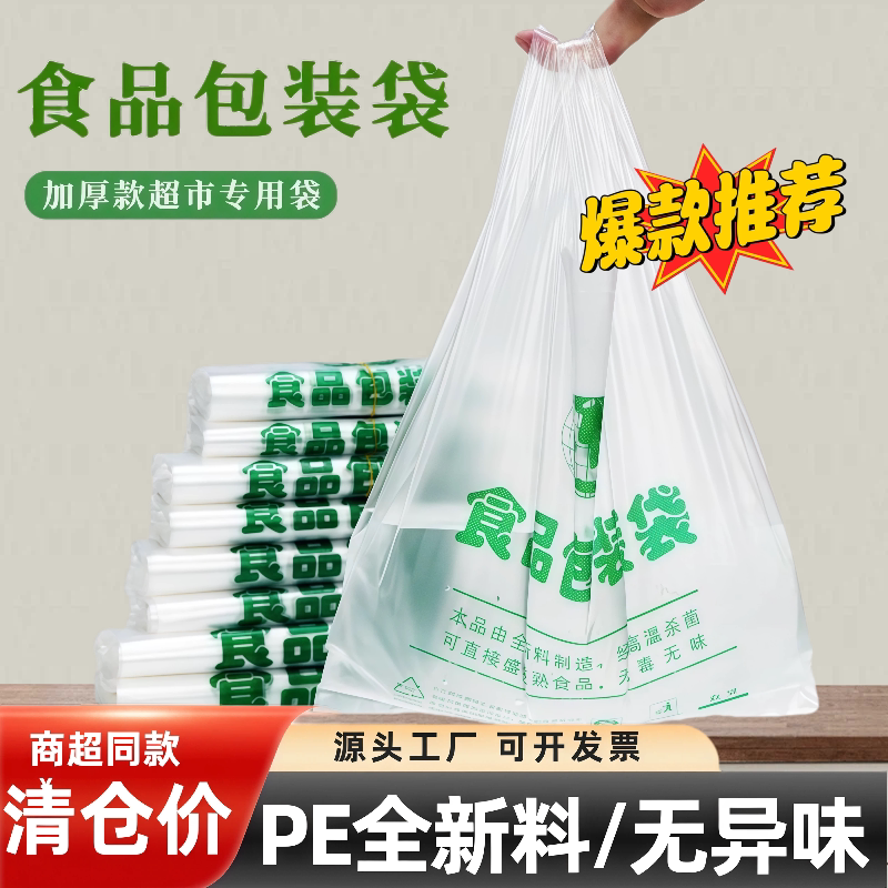 绿色食品袋加厚食品透明塑料袋批发厂家直销外卖打包袋方便手提袋