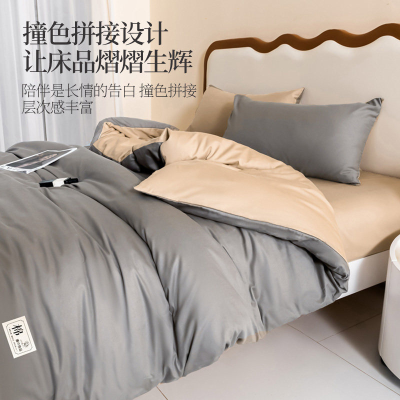 2026新款床上四件套纯棉全棉纯色床单被罩三件套床笠被套床品4