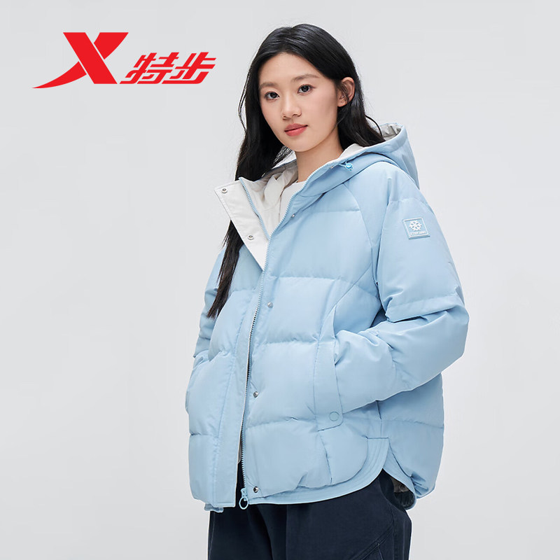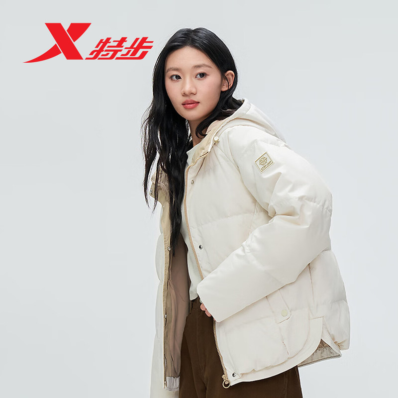 特步羽绒服女款外套有暖气2025冬季新款加厚保暖连帽975428190184