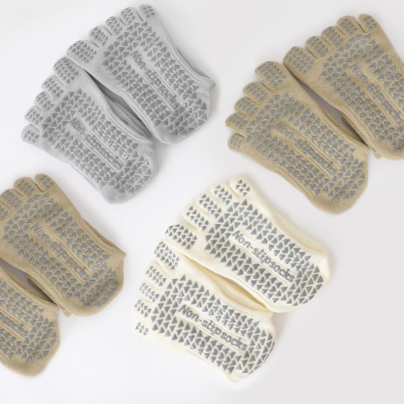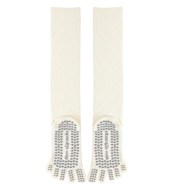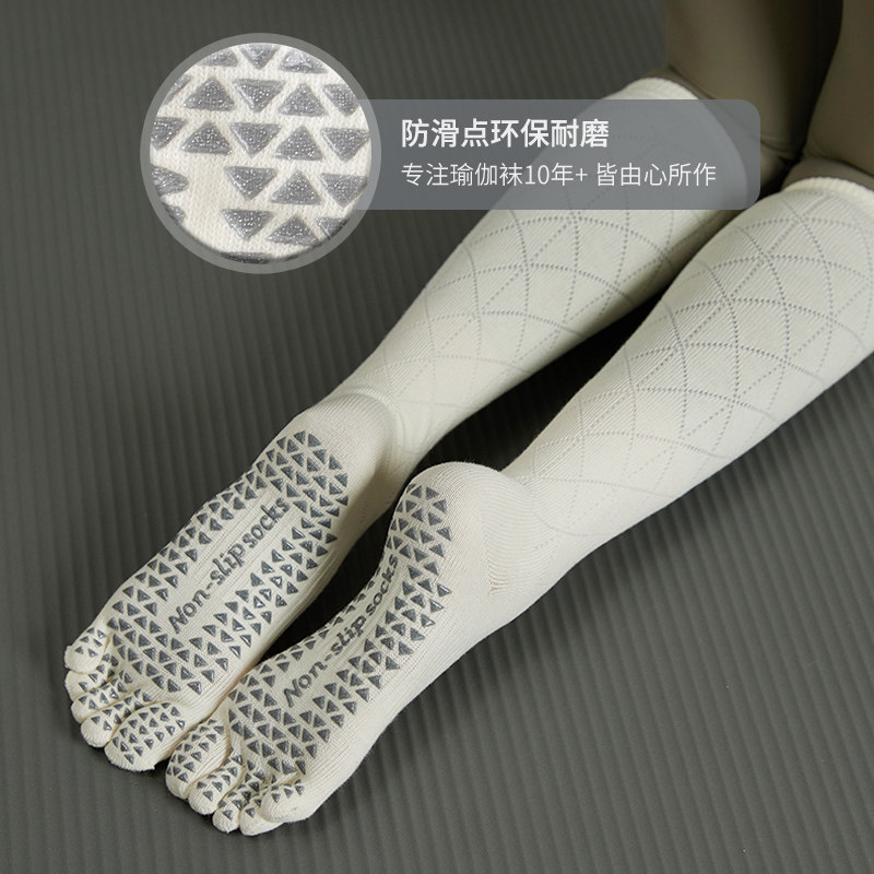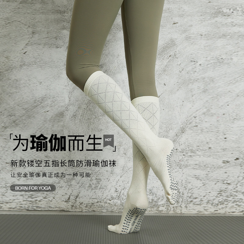 中筒瑜伽袜子防滑专业女五指袜长筒网格白色健身普拉提健身训练袜