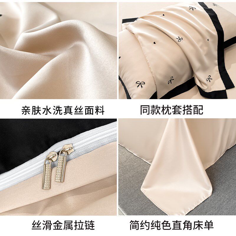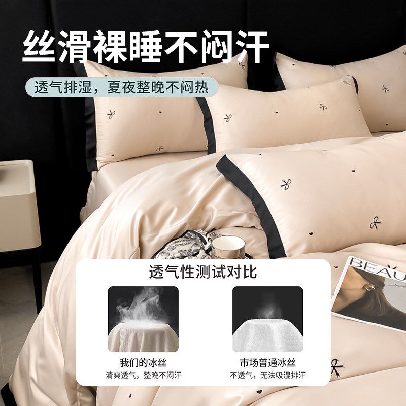 夏季冰丝四件套夏款丝滑裸睡轻奢高级感床单被套床上用品夏天床笠