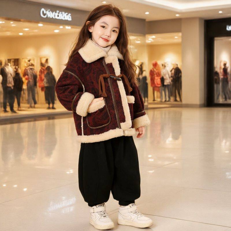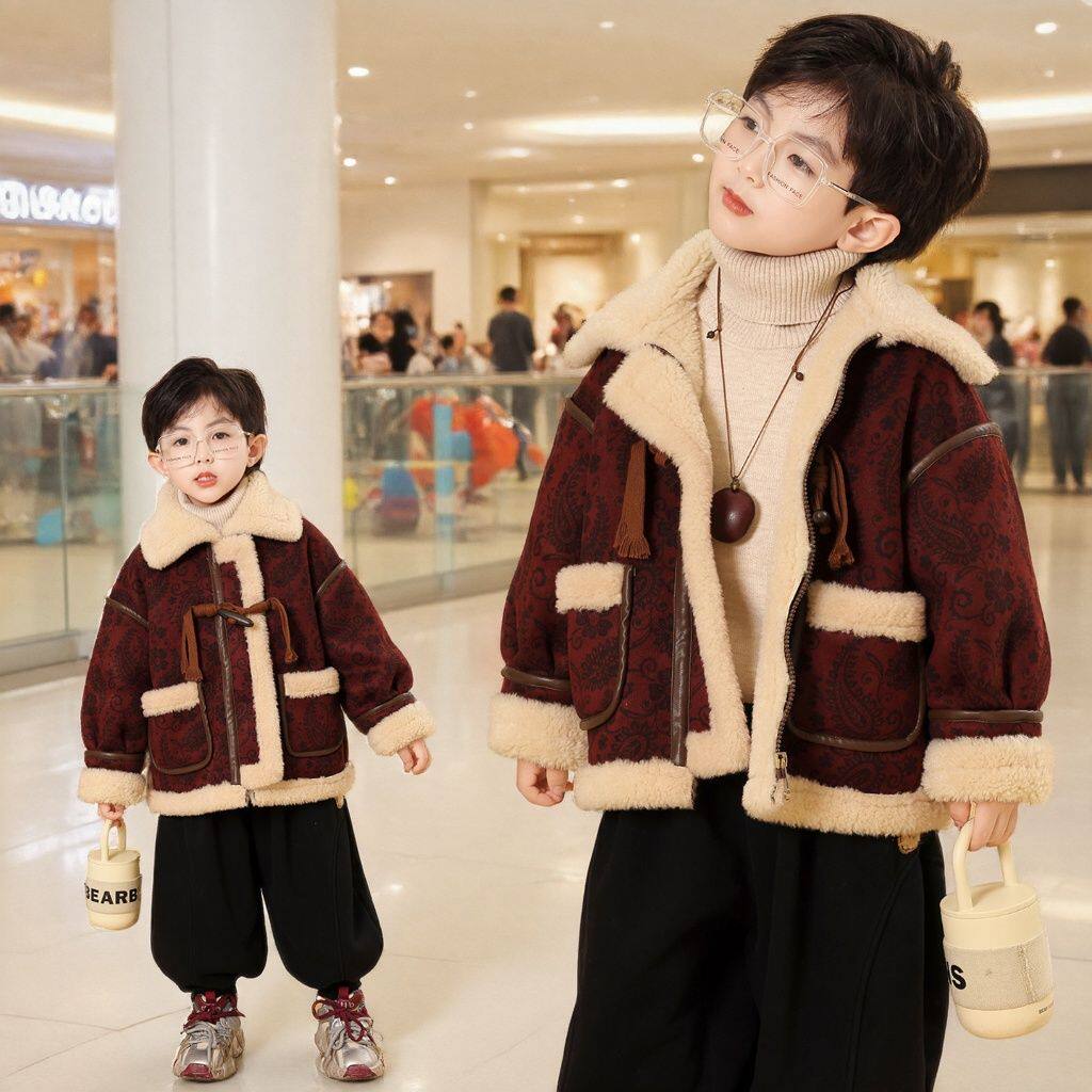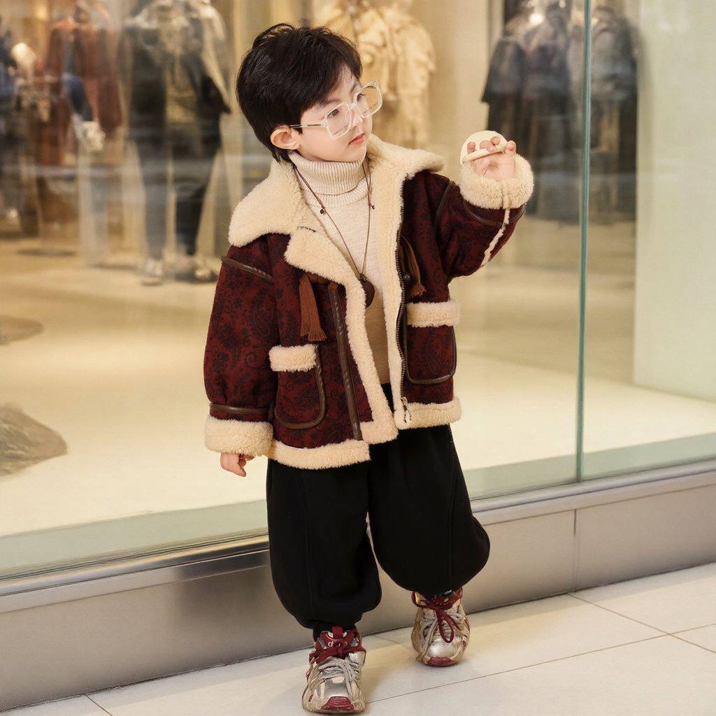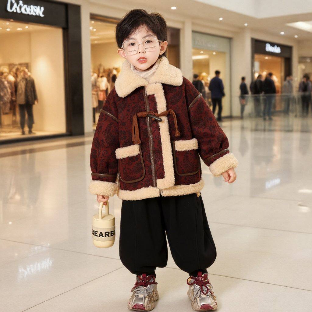男童套装冬季宝宝过年服外套加绒儿童2026新款喜庆小女孩毛呢大衣