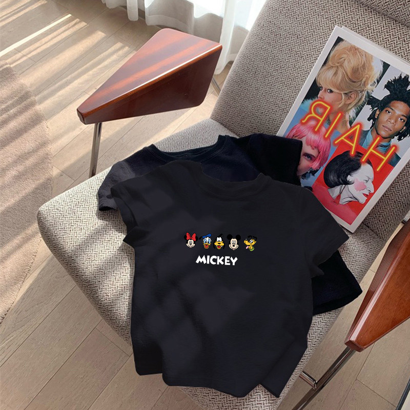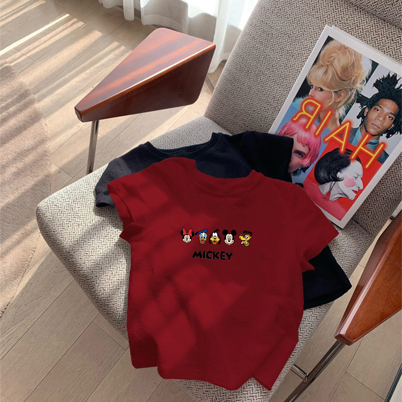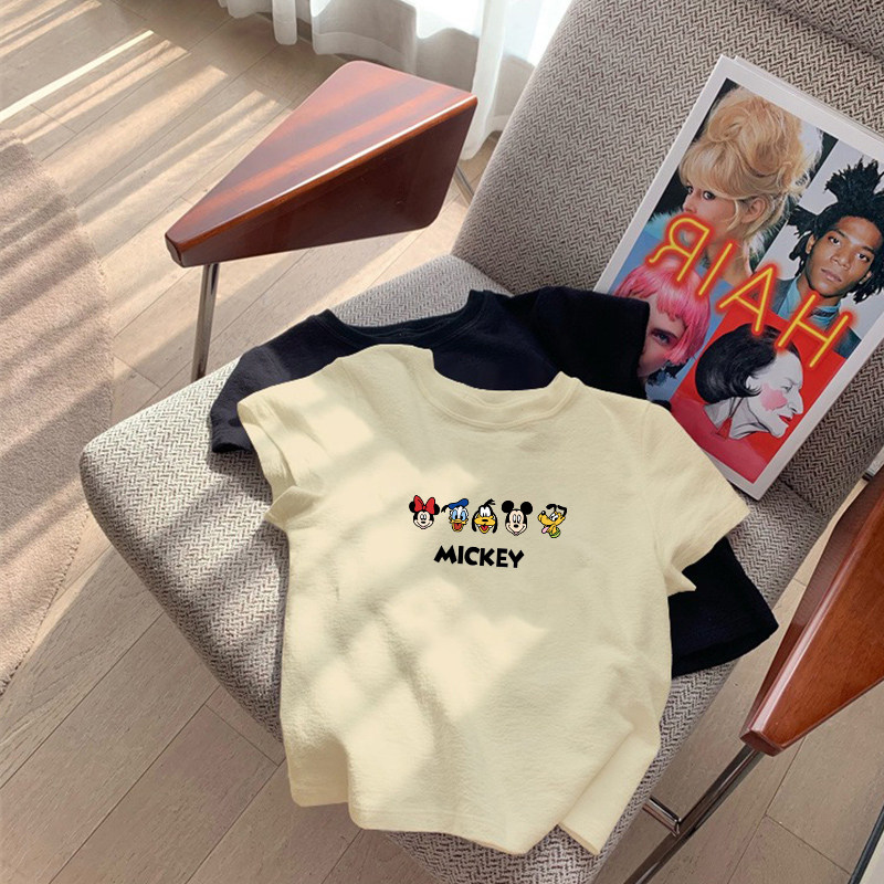 女童米奇纯棉短袖t恤夏装男童夏季中大儿童半袖体恤宽松上衣白色