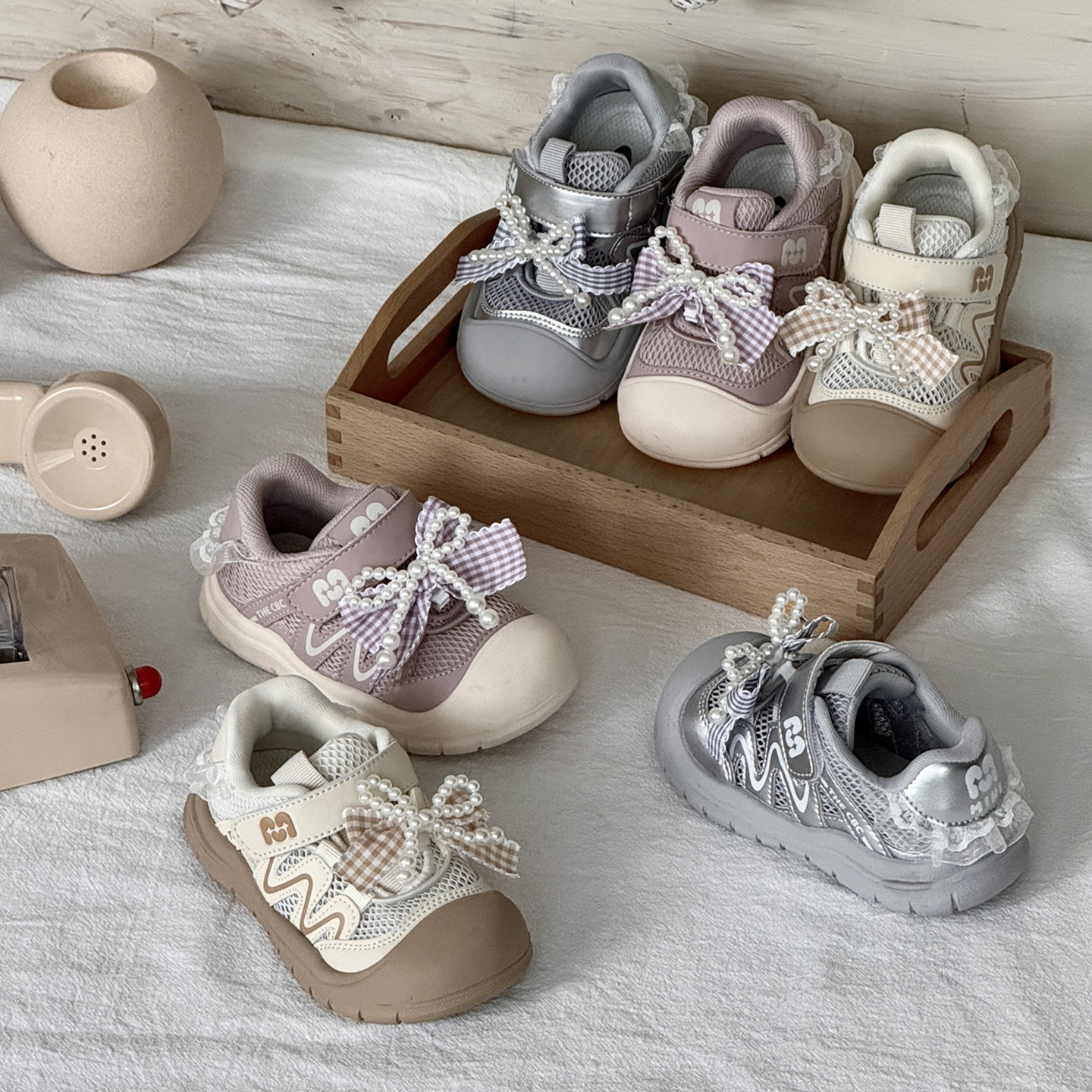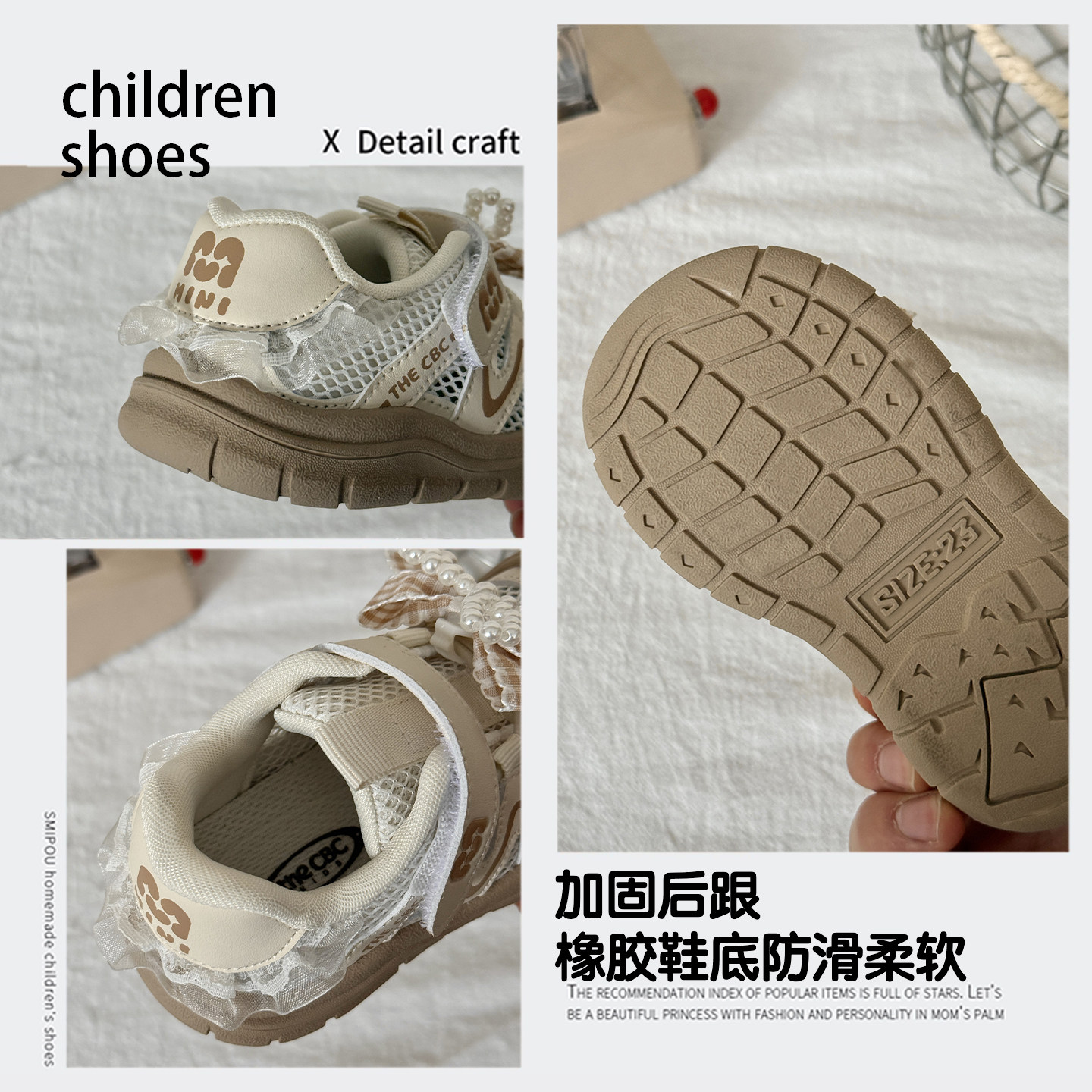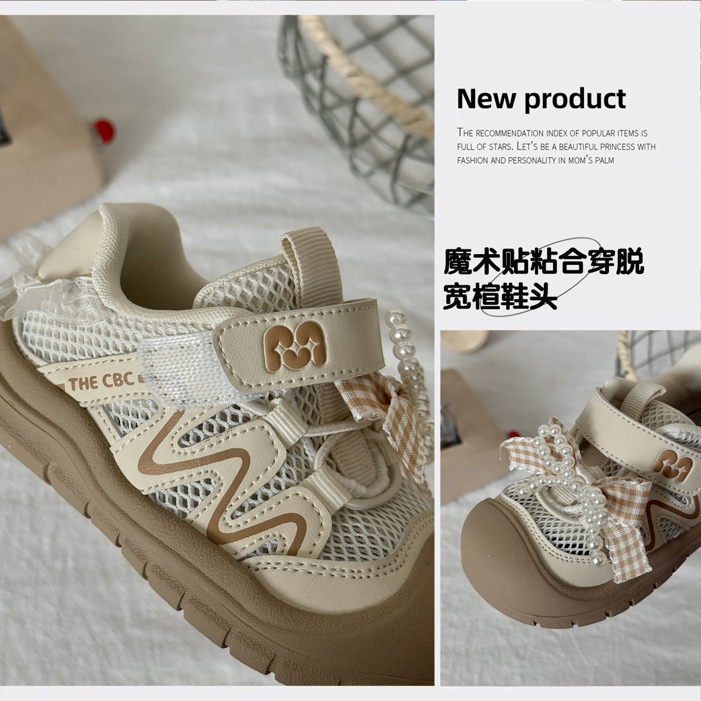 包头防踢儿童鞋蝴蝶结女童运动鞋2026新款春夏透气单网宝宝机能鞋