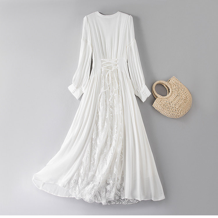 夏季白色棉麻连衣裙三亚海边度假沙滩裙云南穿搭到脚踝防晒长裙