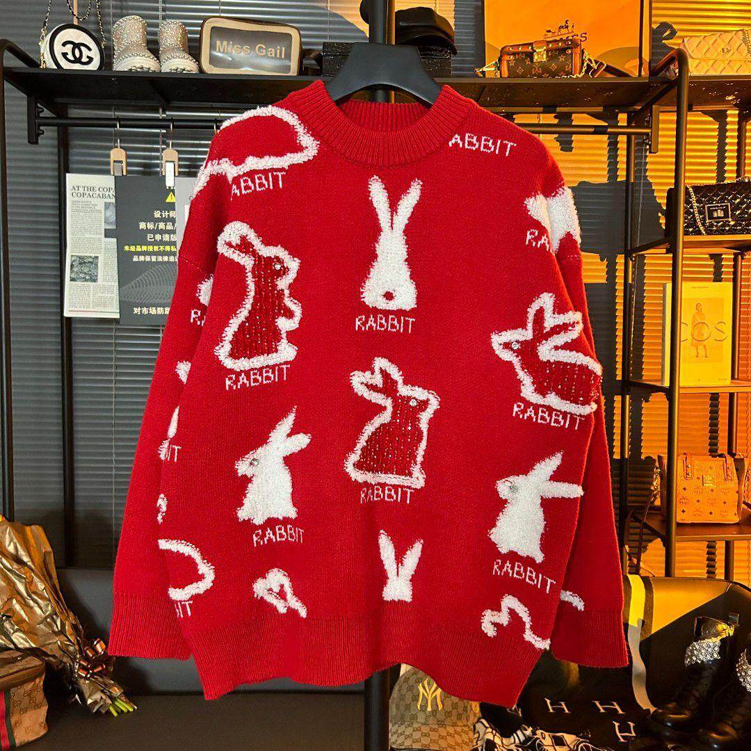 红色毛衣女款慵懒高级感大码外穿2026春季新款宽松内搭针织衫上衣