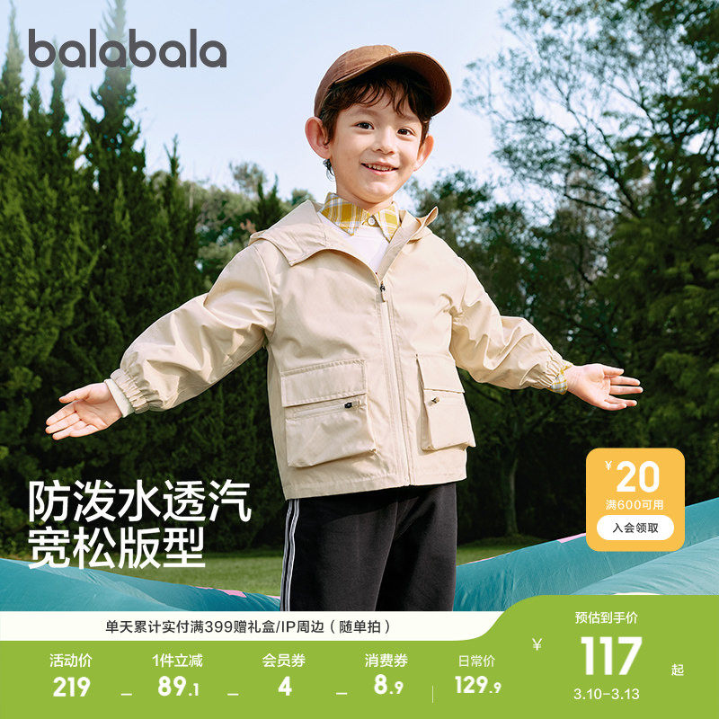 巴拉巴拉童装儿童外套男童女童春装户外防护上衣时尚防泼水透湿潮