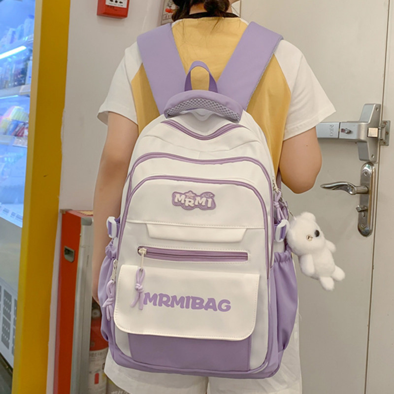 311线报网描述:高颜值撞色蓝色书包女