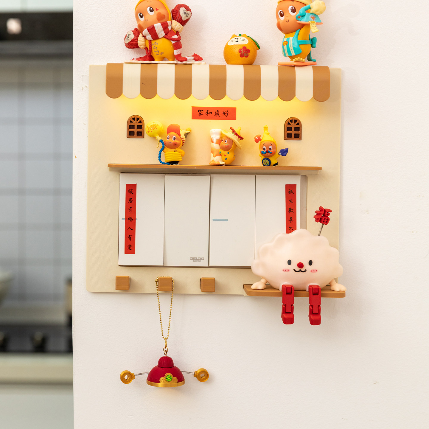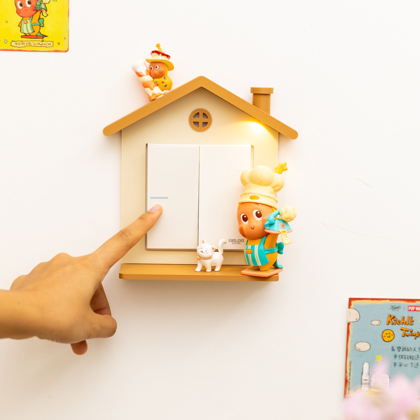 阿楹 立体客厅儿童房墙面玄关挂饰壁灯画开关遮挡摆件盲盒展示架