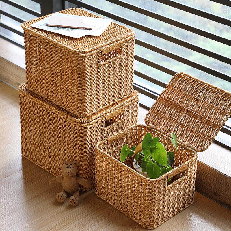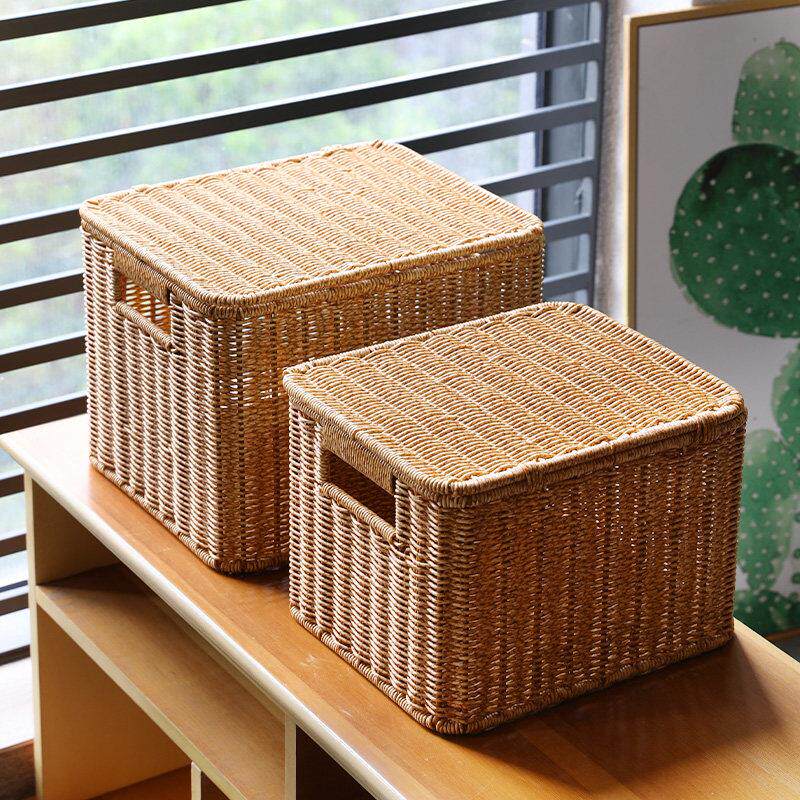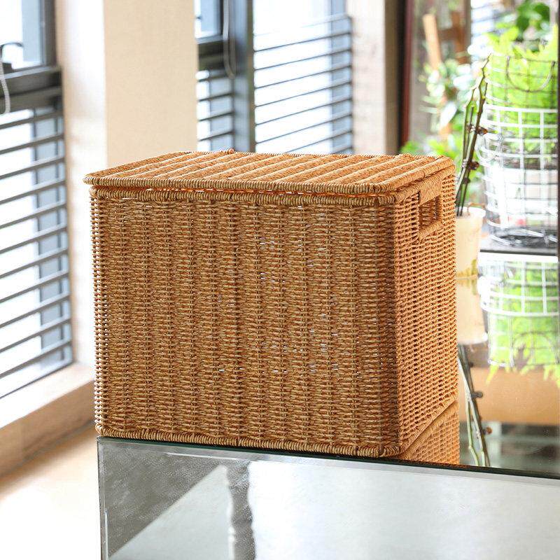 彷藤编织筐收纳整理箱家用 大号衣物编织筐带盖子衣帽间柜子收纳