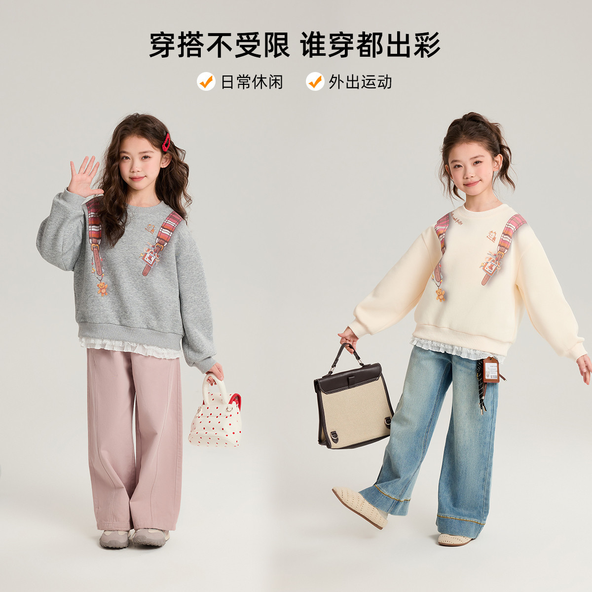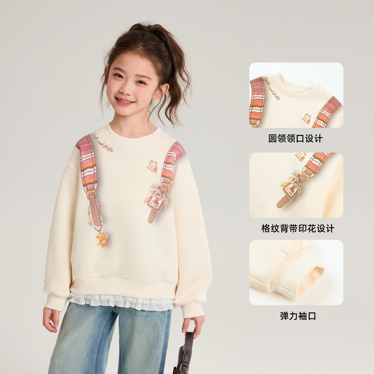 布丁哈鲁春装女童童装上衣2026春季新款儿童童趣卡通印花卫衣