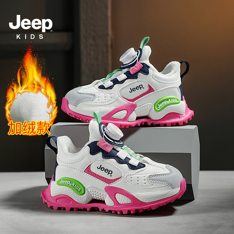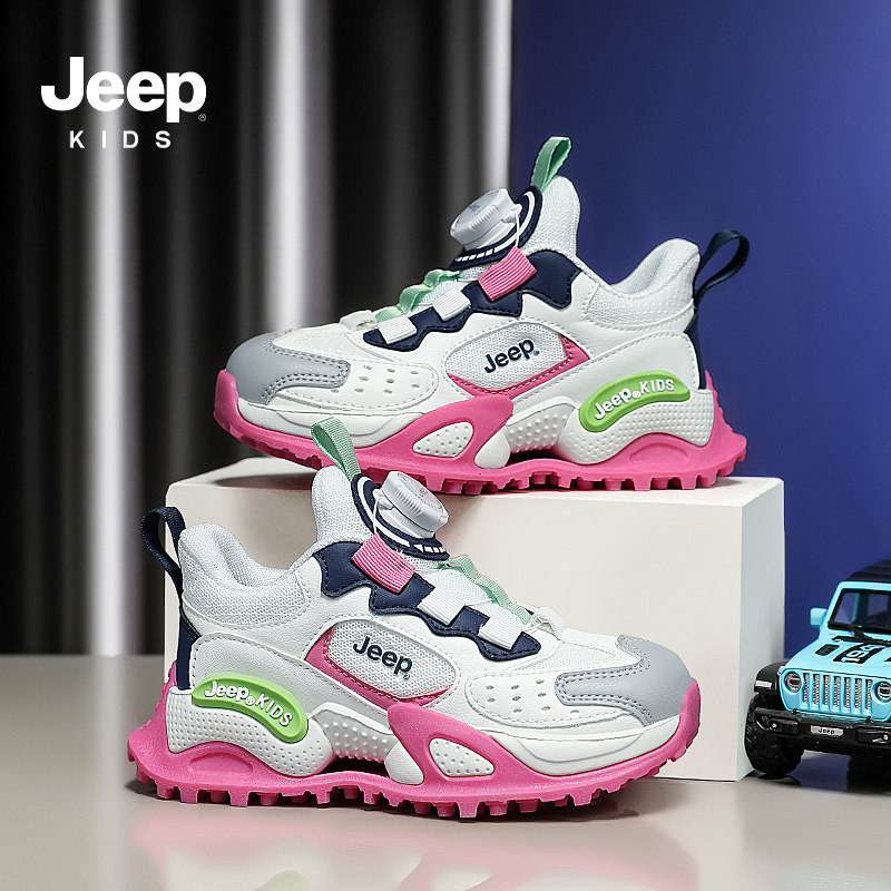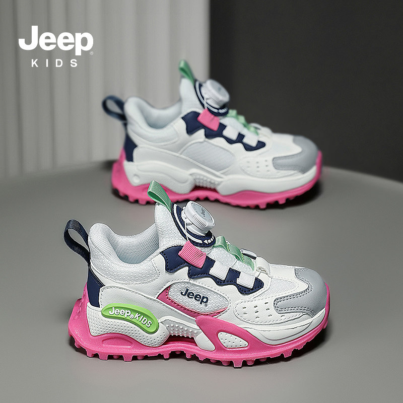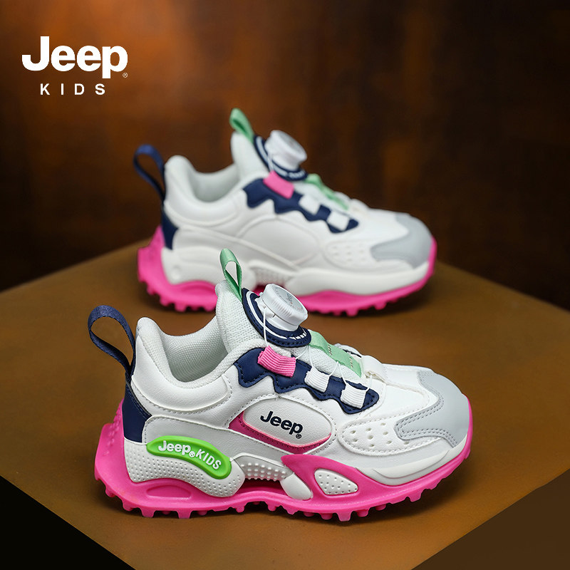 Jeep女童运动鞋2026春夏新款网面透气皮面防水女孩户外跑步鞋网鞋