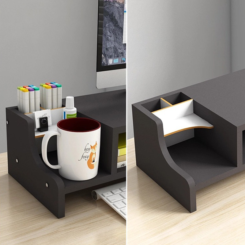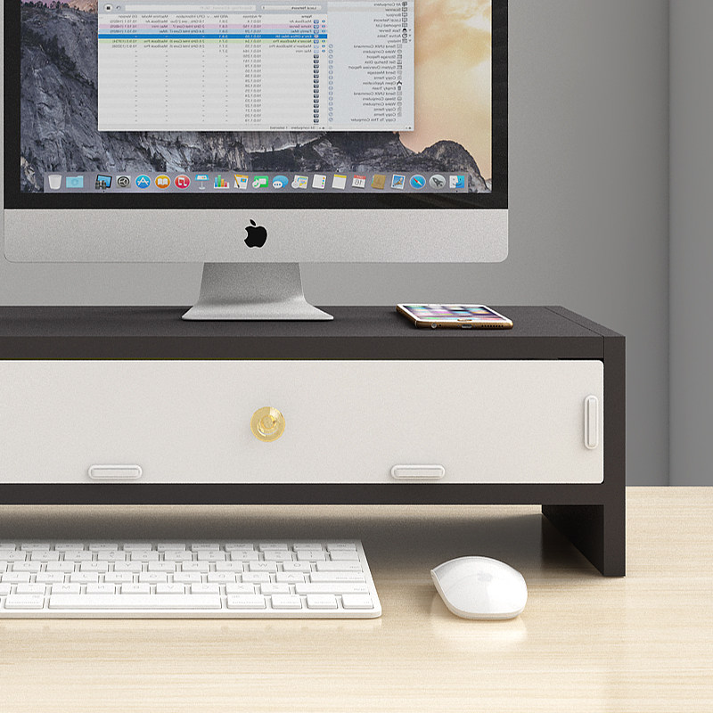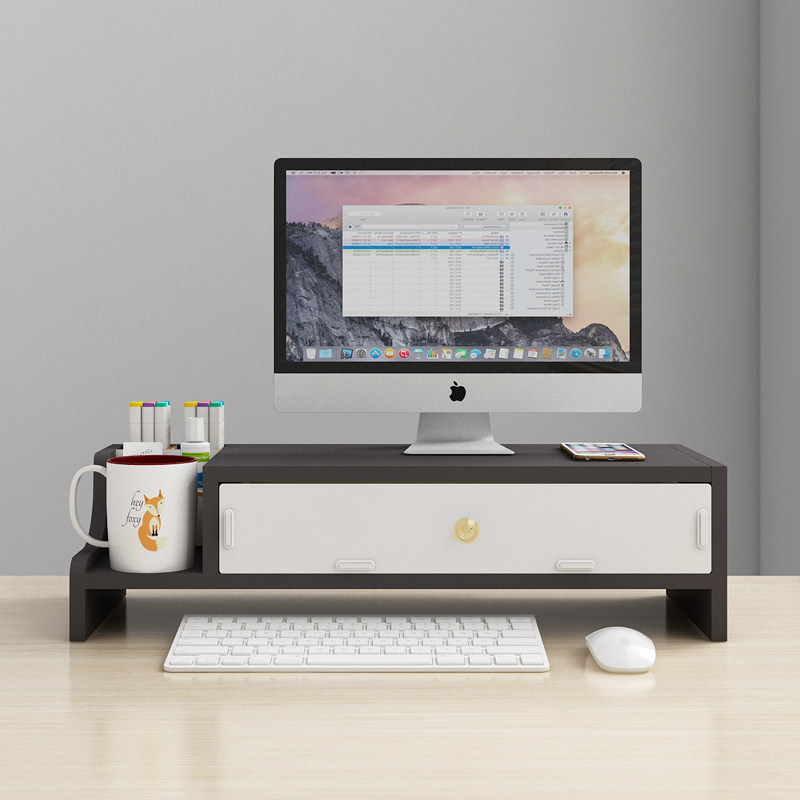 办公桌电脑增高架女生工位收纳架子带抽屉显示器支撑架杯架置物架