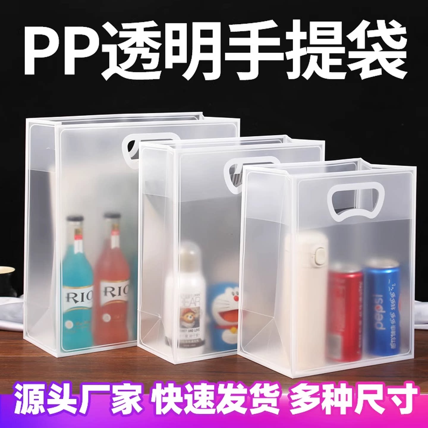 PP透明礼品袋磨砂手提袋结婚手拎袋喜糖母亲节伴手礼包装袋子定制