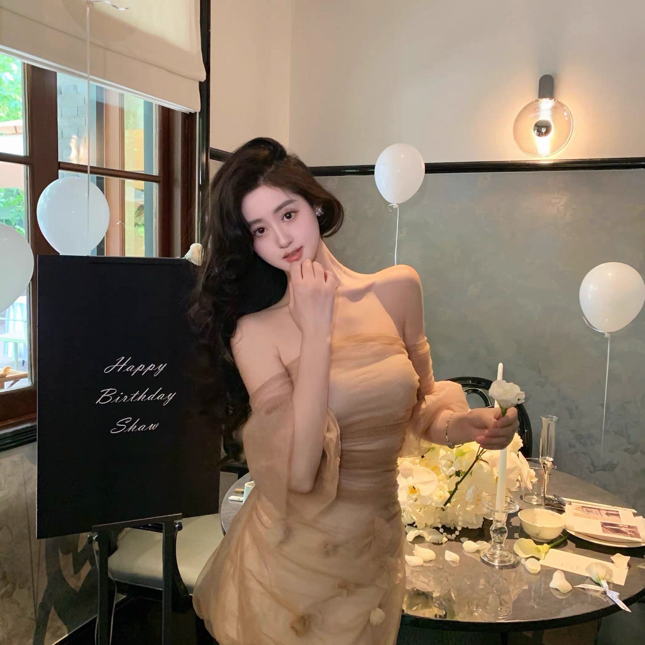 加小码女装150cm矮个子显高春装XXXS网纱一字肩抹胸连衣裙短款女