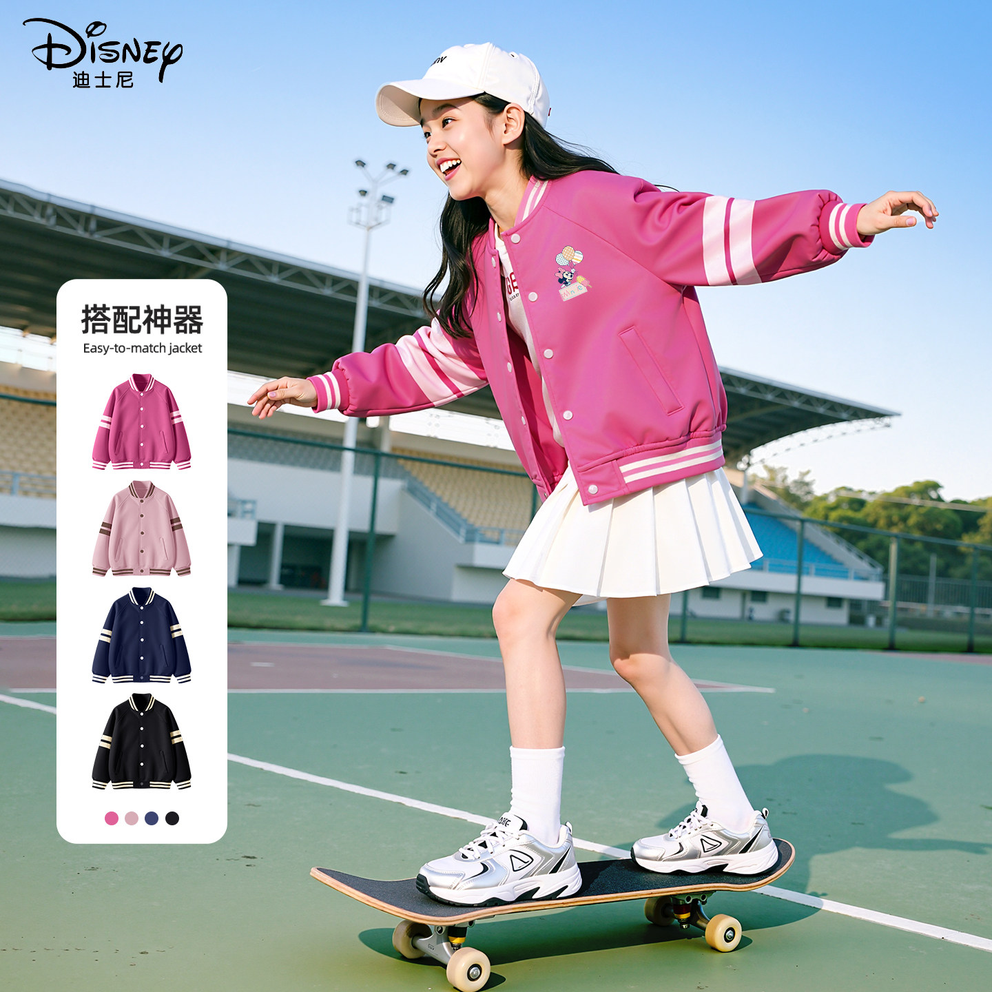 迪士尼女童春装外套2026新款10岁大童女孩童装上衣儿童春季棒球服