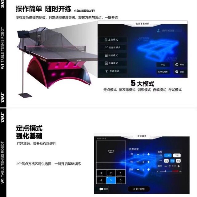 DHS红双喜W1专业自动乒乓球发球机教学考试PAD无线调教落地训练器