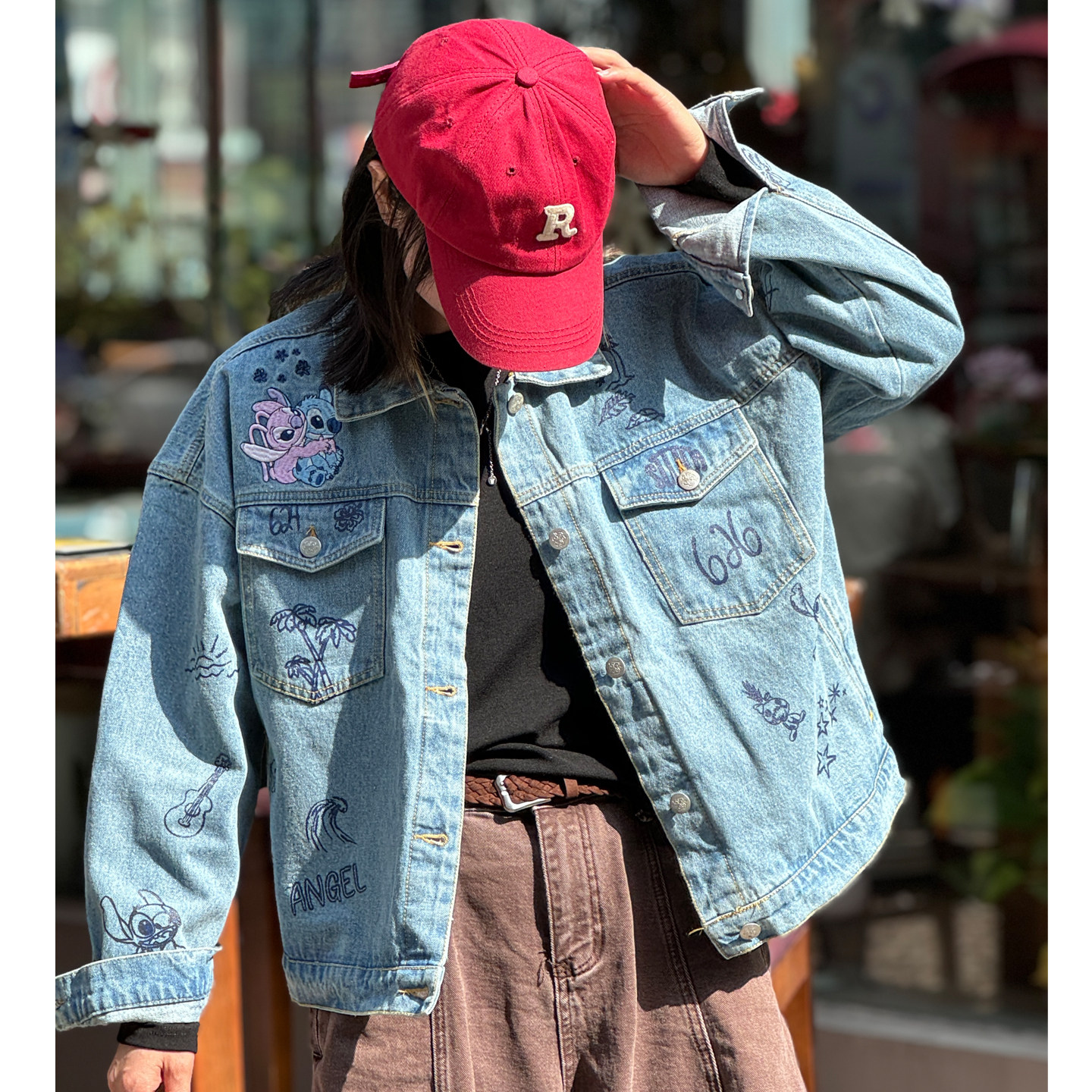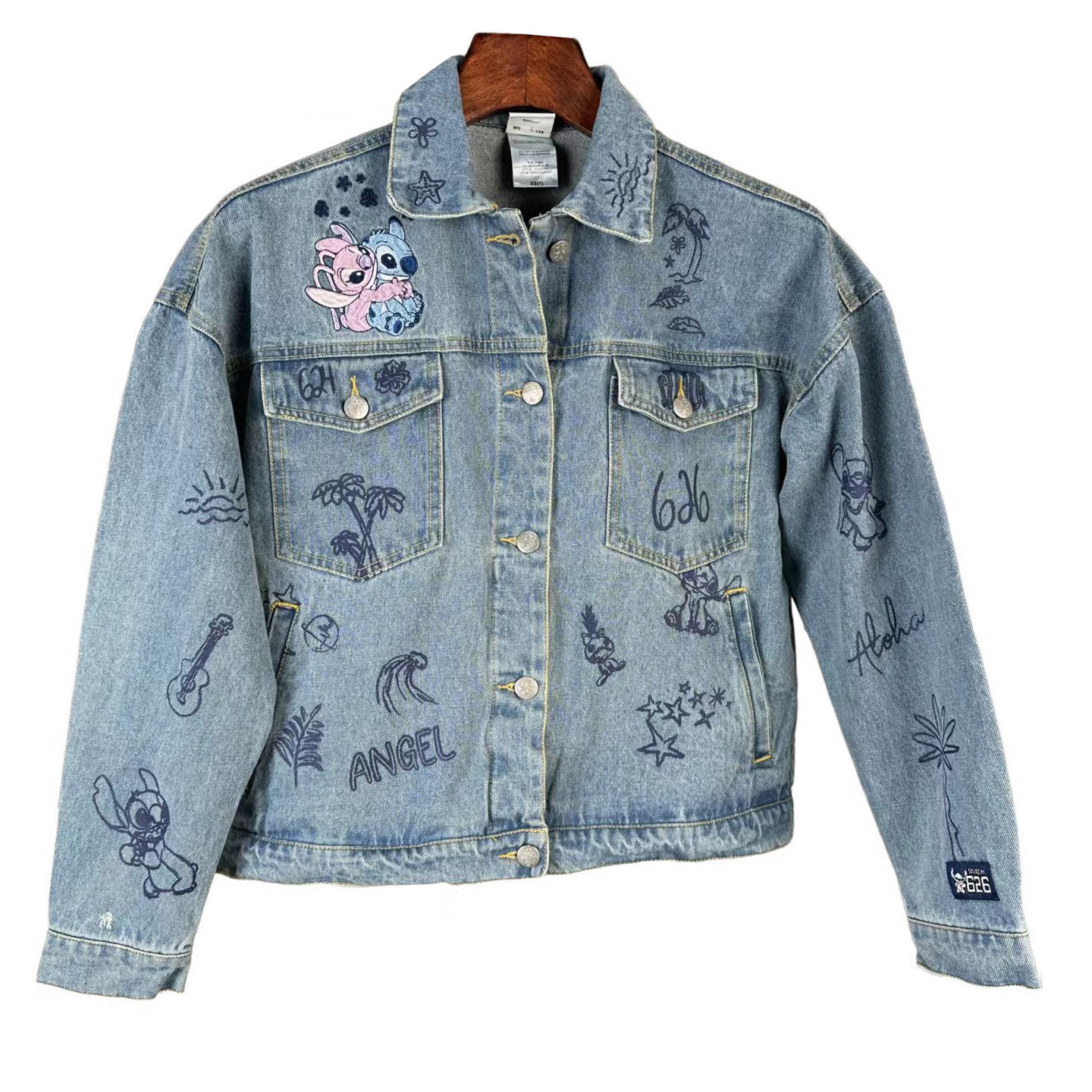 外贸断码牛仔上衣女款春秋季D 洗水绣花涂鸦挎肩休闲宽松百搭外套