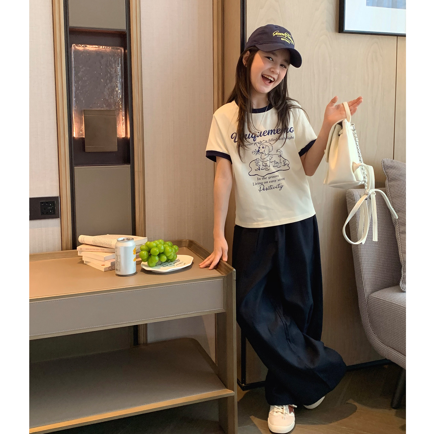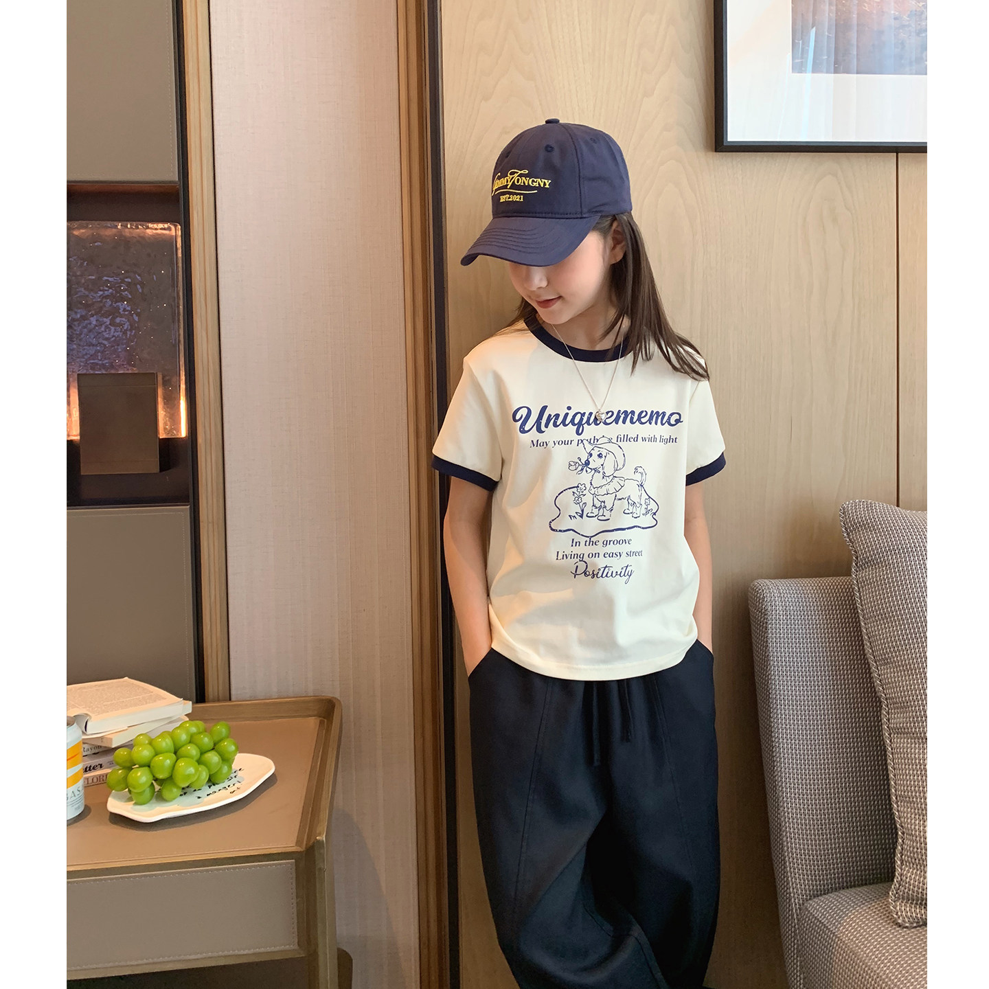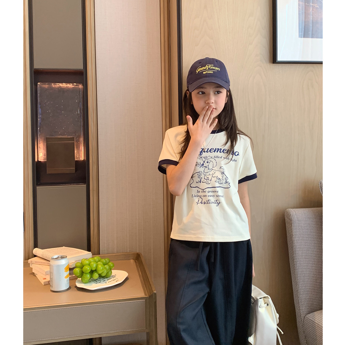 女大童撞色修身短款T恤2026夏季新款青少年酷飒卡通短袖初中生棉T