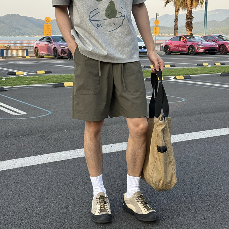 Nick Tian 薄款柔软松紧带速干短裤男款夏季新款美式复古宽松休闲