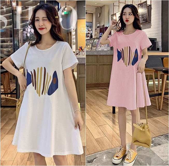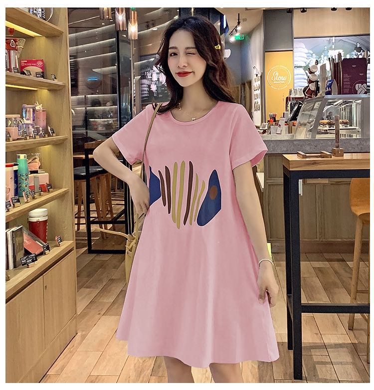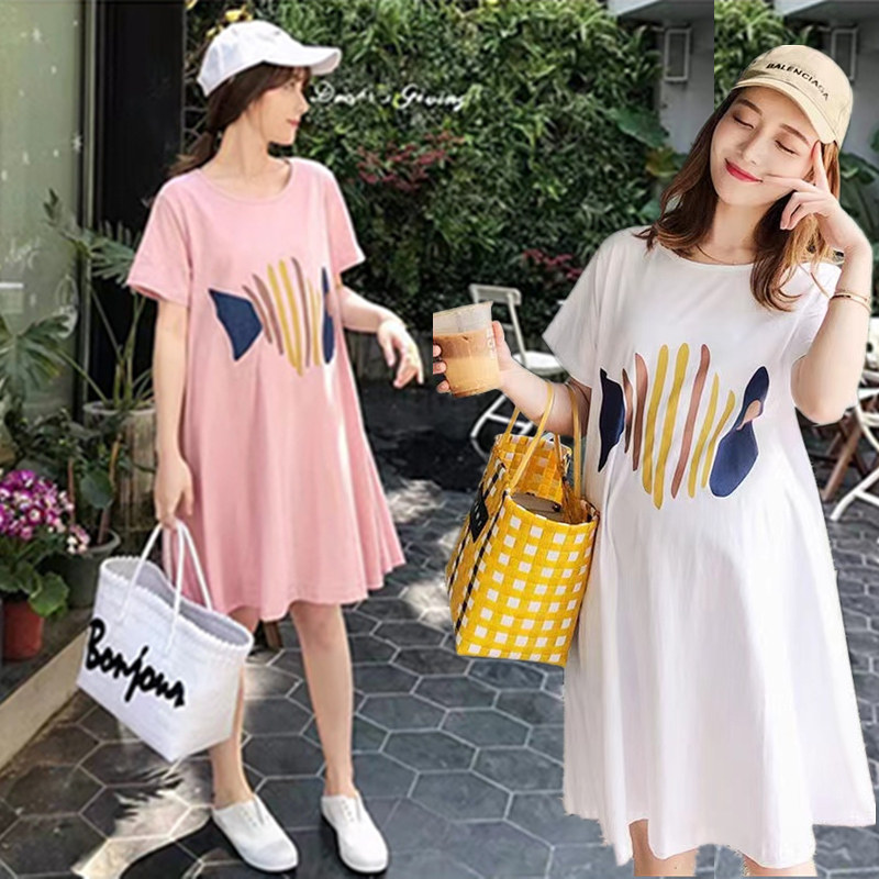 孕妇连衣裙夏季短袖薄款宽松大码中长款夏天上衣裙子孕妇套装夏装