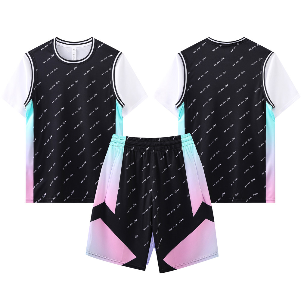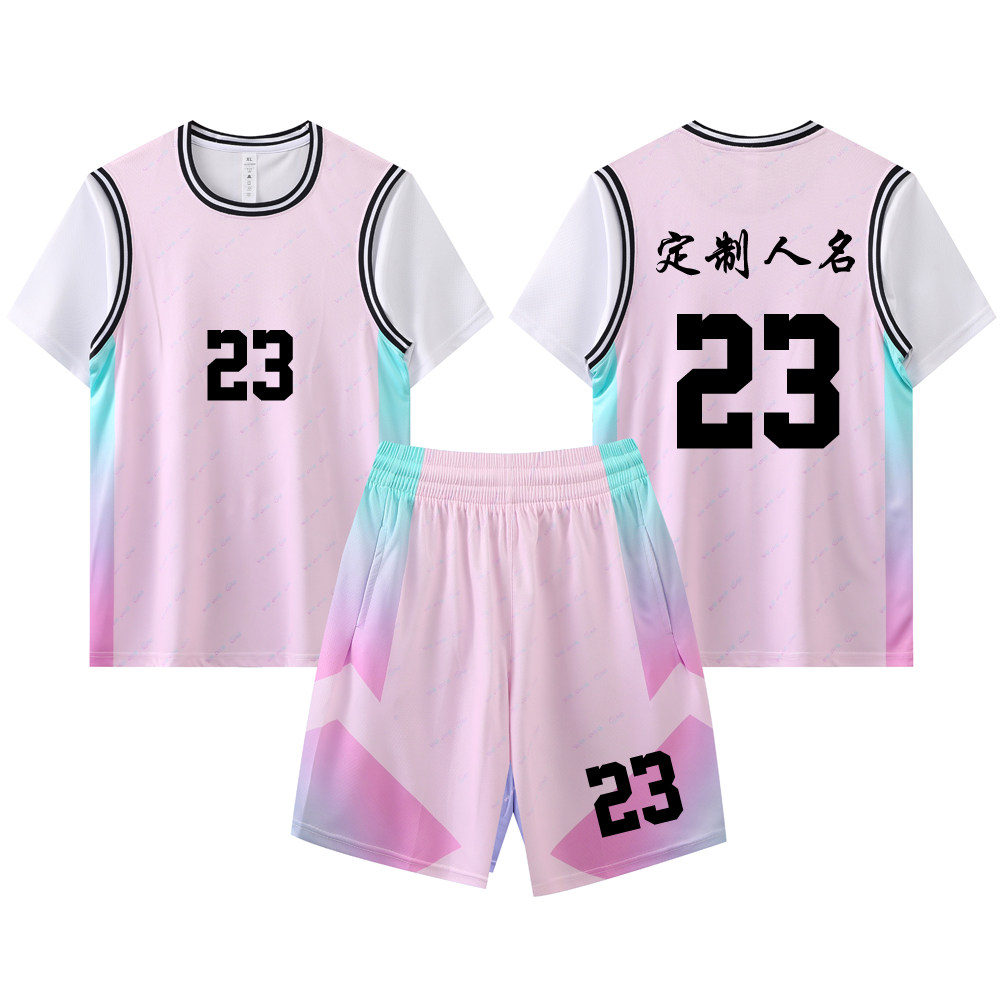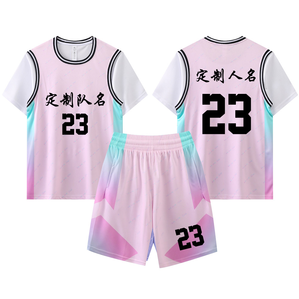 女款女生女童学生假两件短袖篮球服运动健身套装定制印刷B005浅粉
