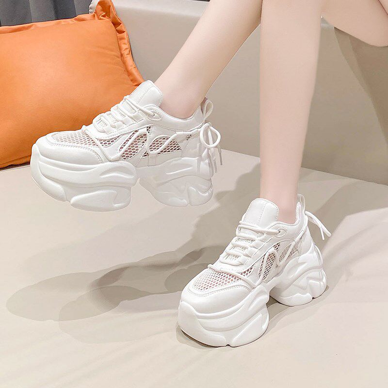 炸街老爹鞋百搭白色运动鞋女夏新款8cm厚底增高透气网面休闲板鞋