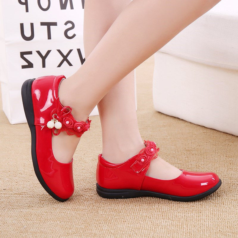 儿童皮鞋女童红色单鞋春秋季宝宝黑皮鞋小高跟公主真皮鞋女孩子鞋