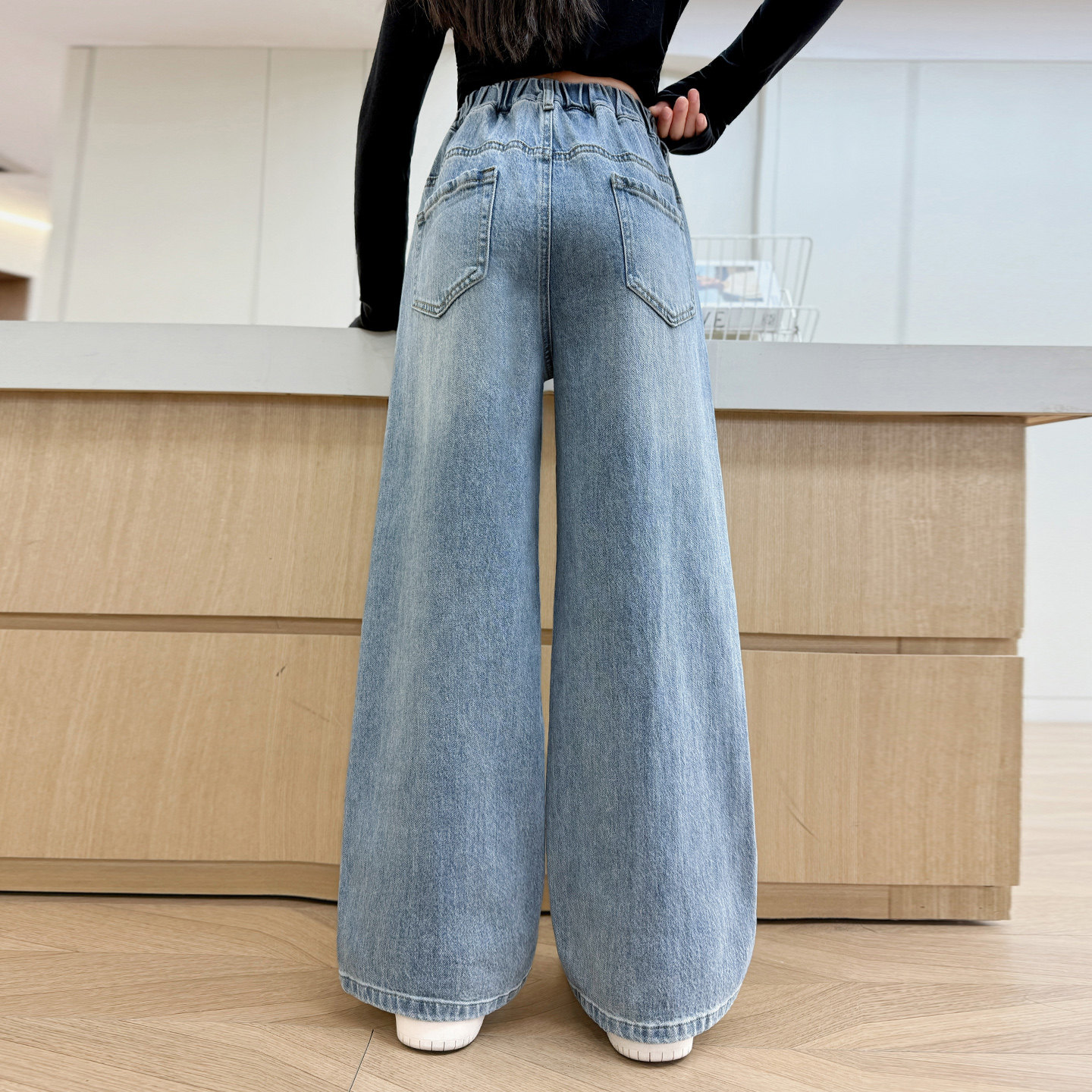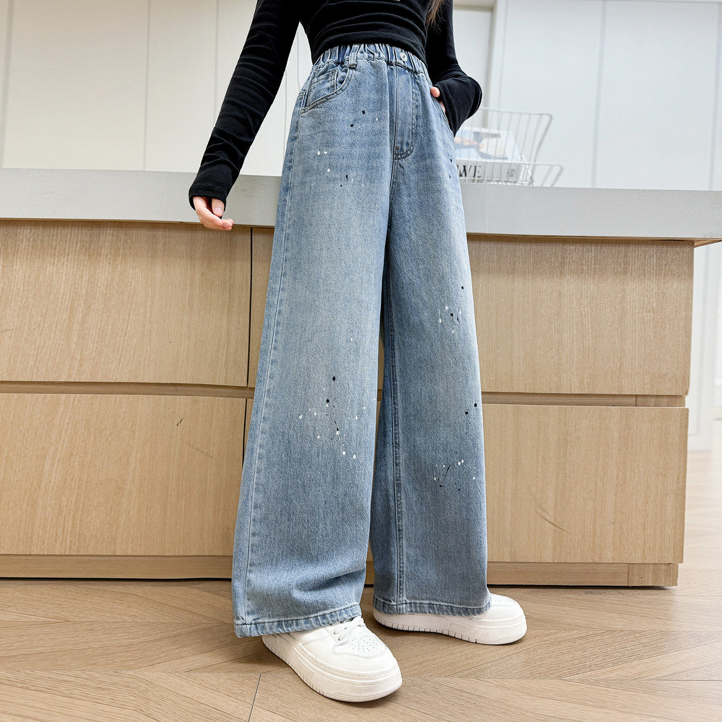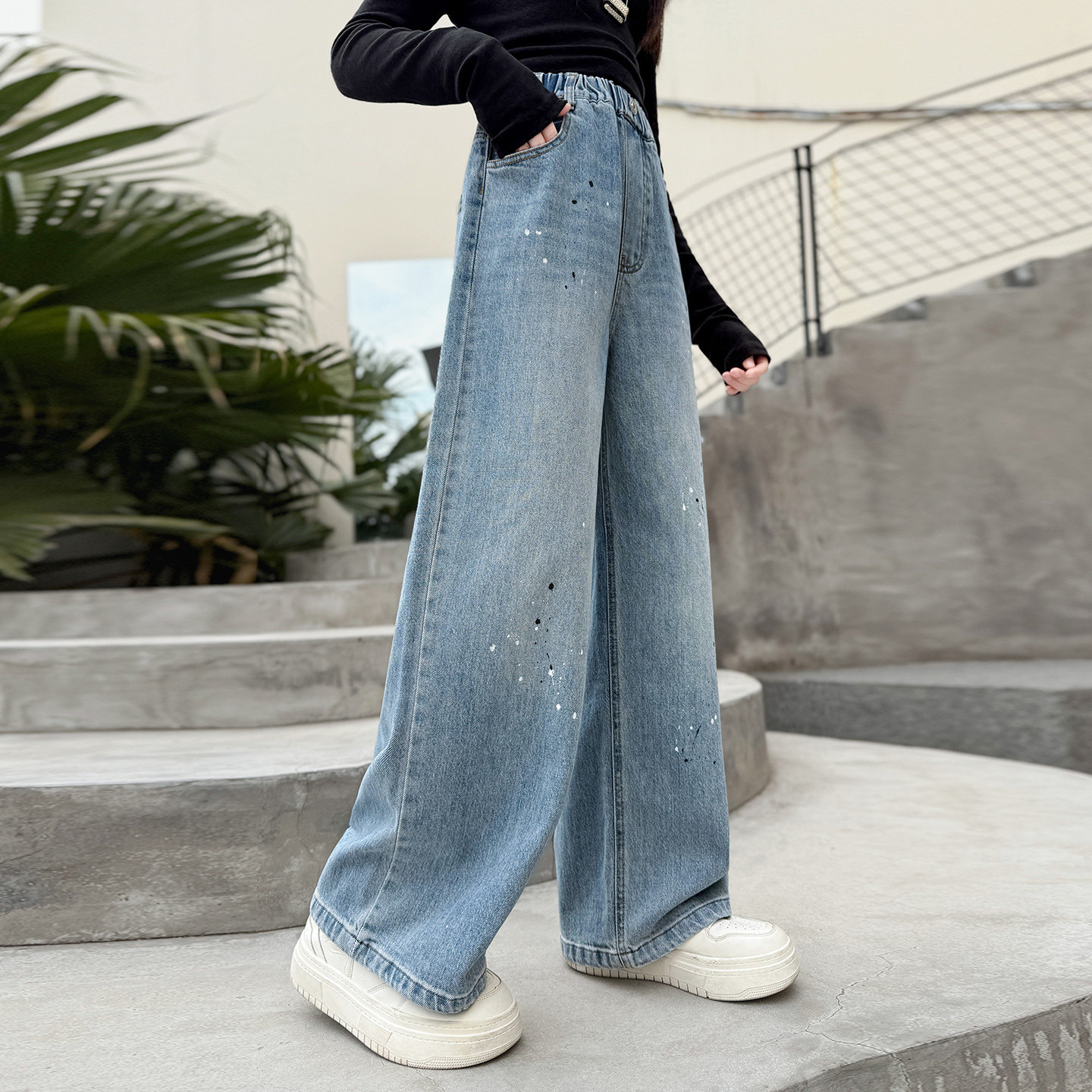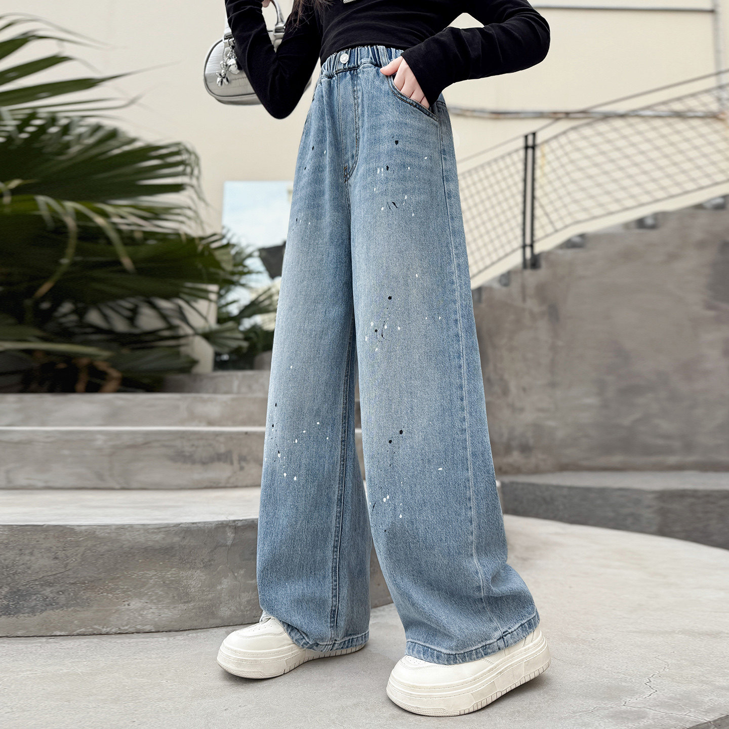 儿童牛仔裤春季初中生女孩裤子春秋休闲裤女童阔腿裤春款大童长裤