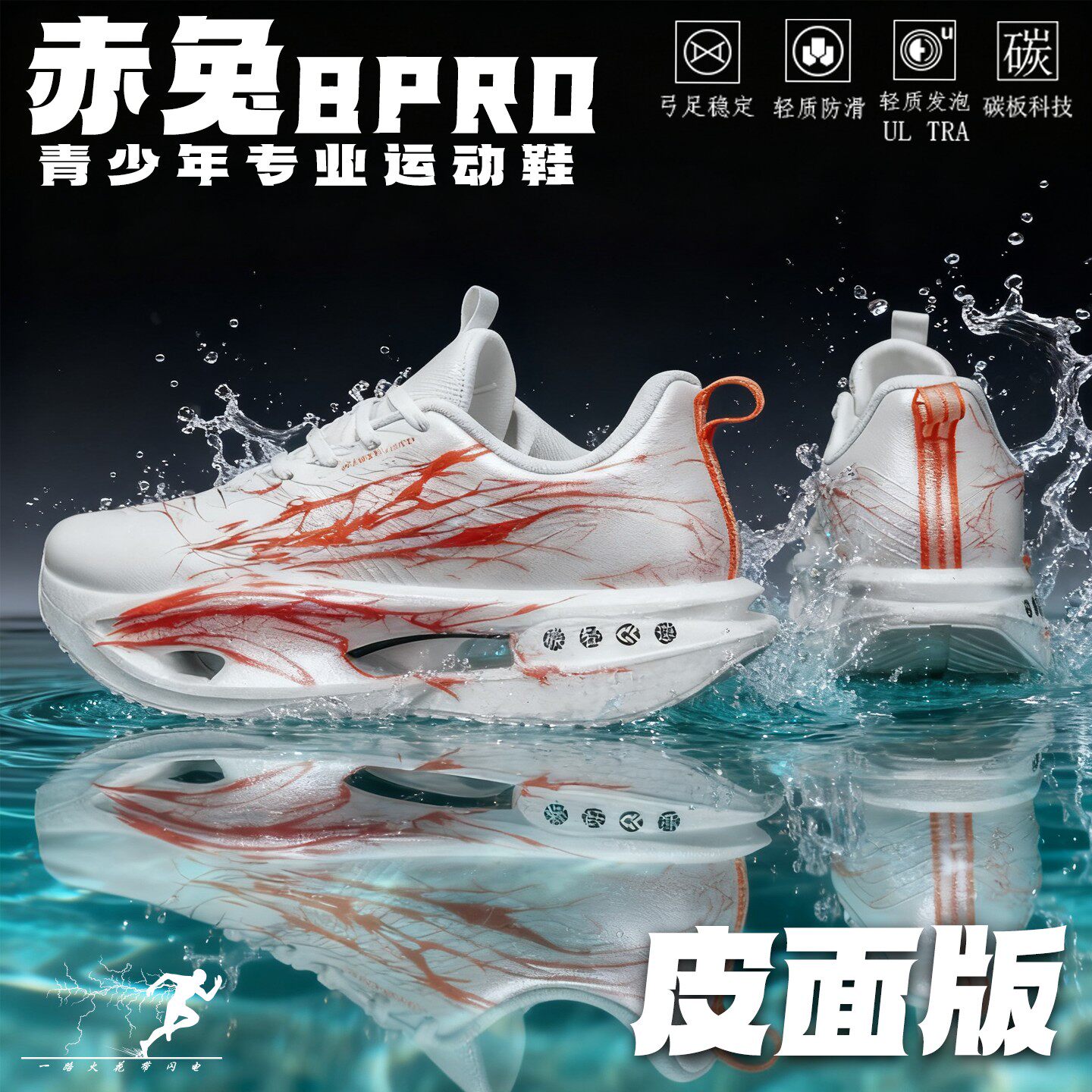 赤8pro皮面防水碳板跑鞋冬季减震运动鞋男童加绒跑步鞋科技专业