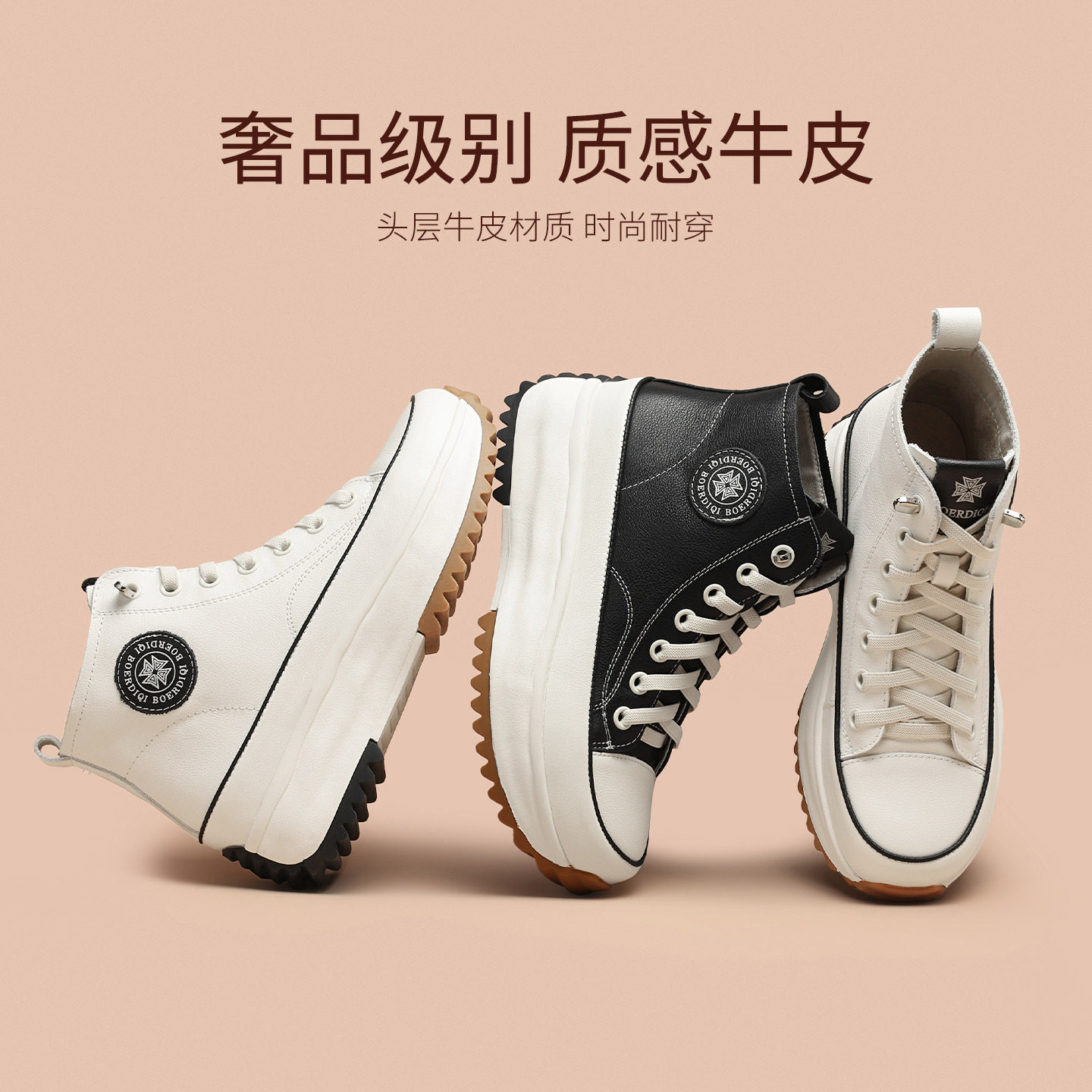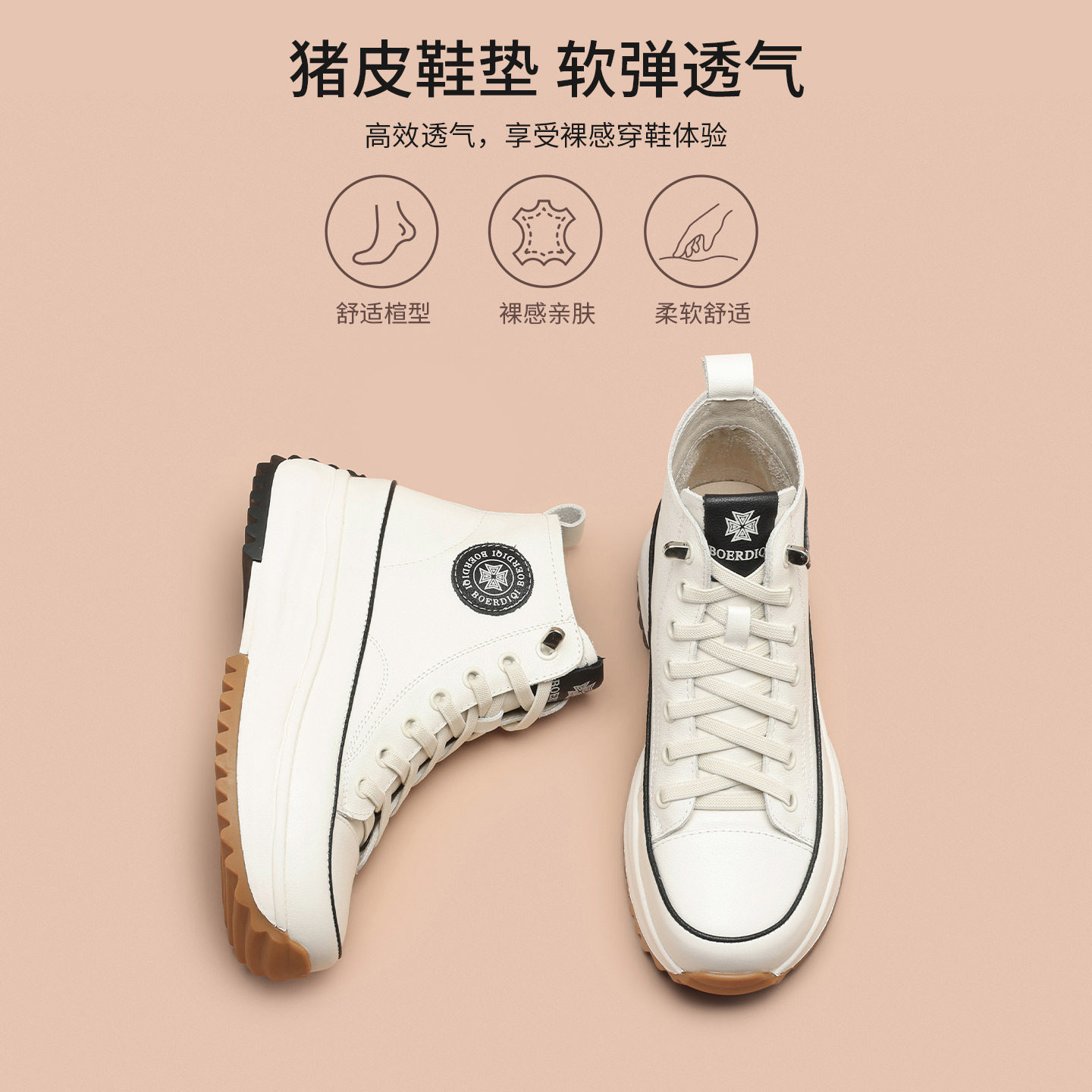 波尔谛奇【头层牛皮】厚底高帮鞋女春秋款运动休闲鞋百搭小白鞋