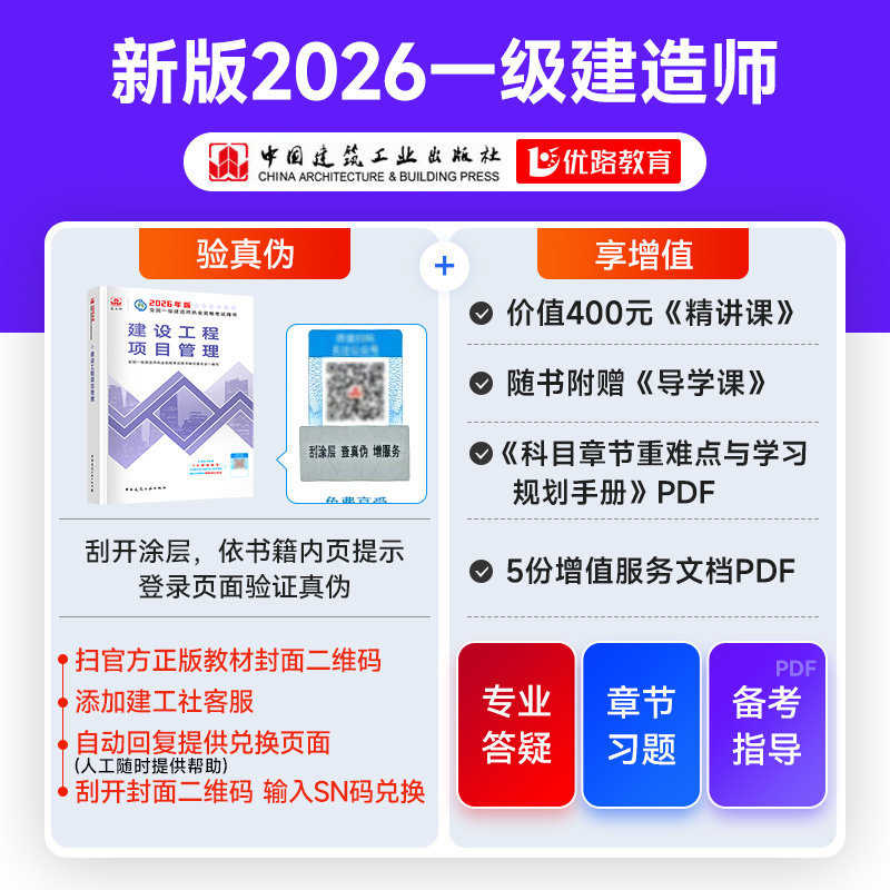 建工社新版 一建教材2026年一级建造师官方教材网课通信与广电矿业铁路工程民航机场港口与航道方向自选