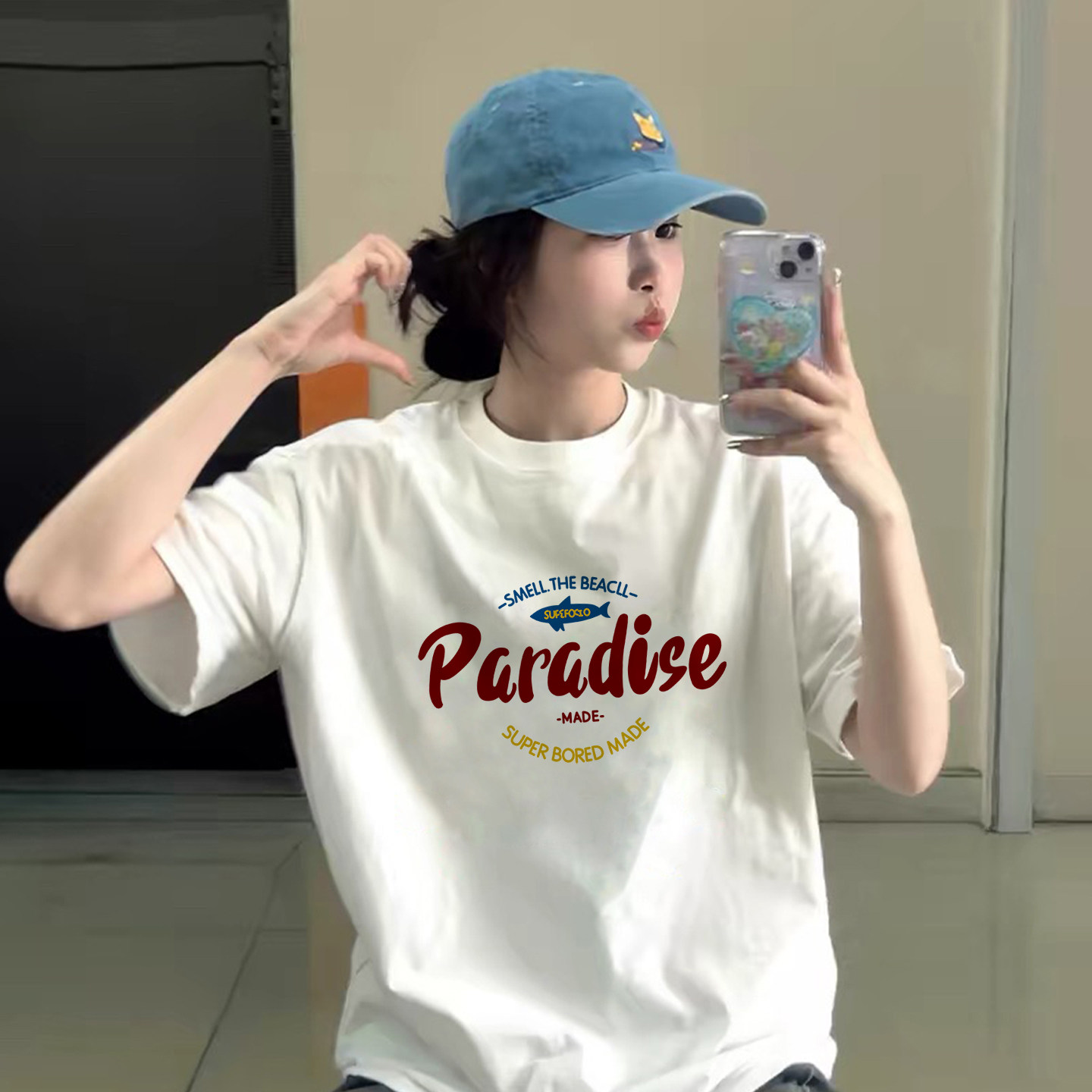 白色t恤女2026新款夏季纯棉宽松慵懒风大码女装巨好看的短袖上衣