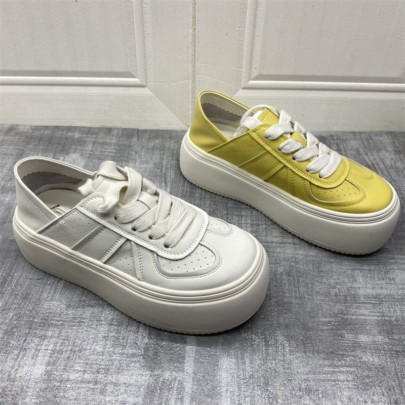 2026春夏新款真皮女鞋学院风厚底细带休闲鞋百搭简约减龄小白鞋女