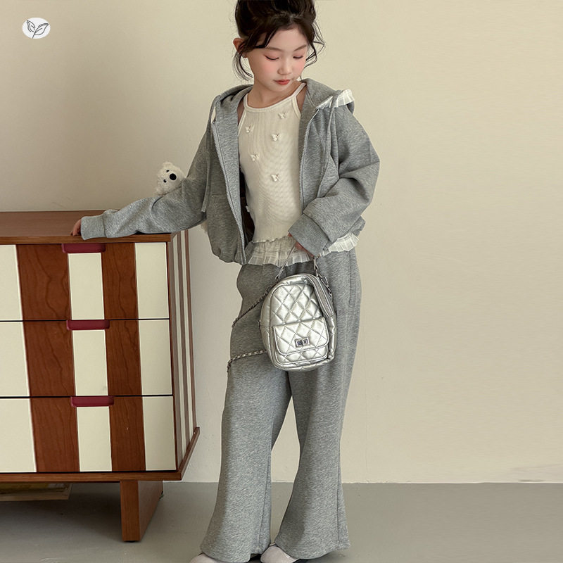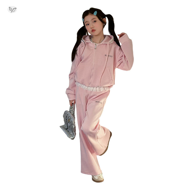 女童花边运动套装2026年春秋新款中大童连帽卫衣微喇裤两件套韩系