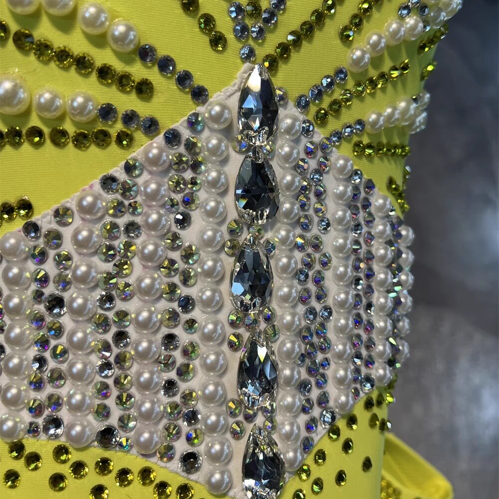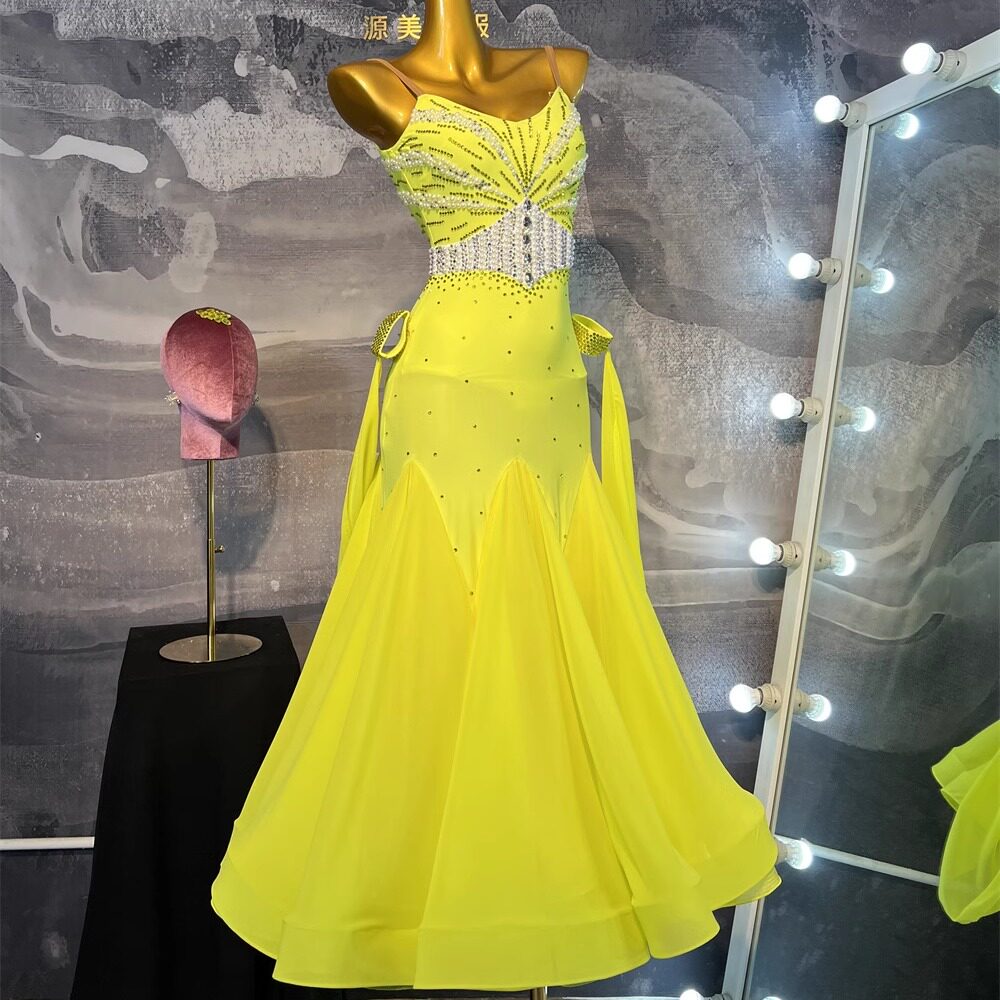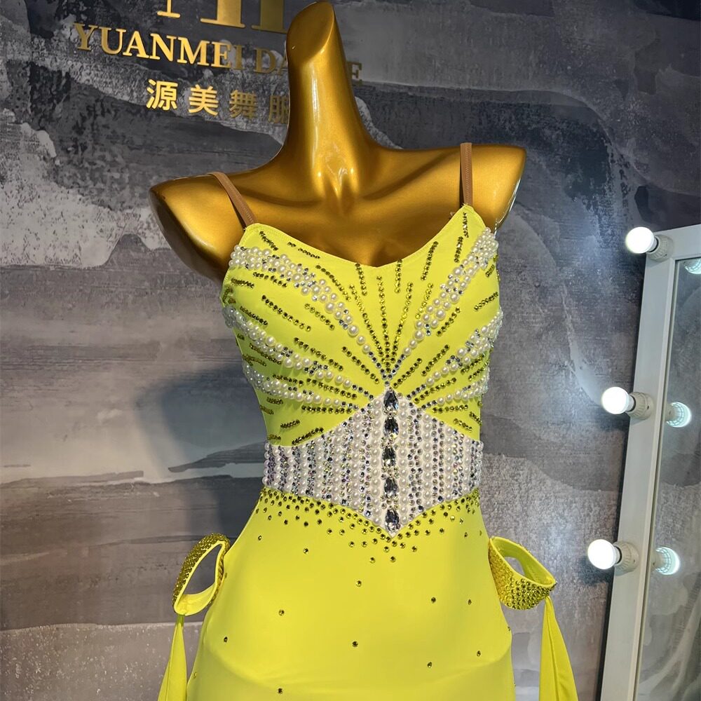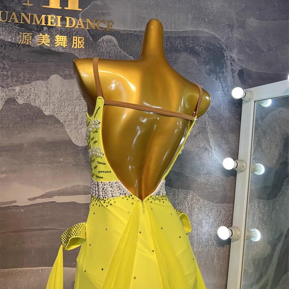 源美舞服拉丁舞比赛黄色摩登赛服专业表演恰恰伦巴花服赛